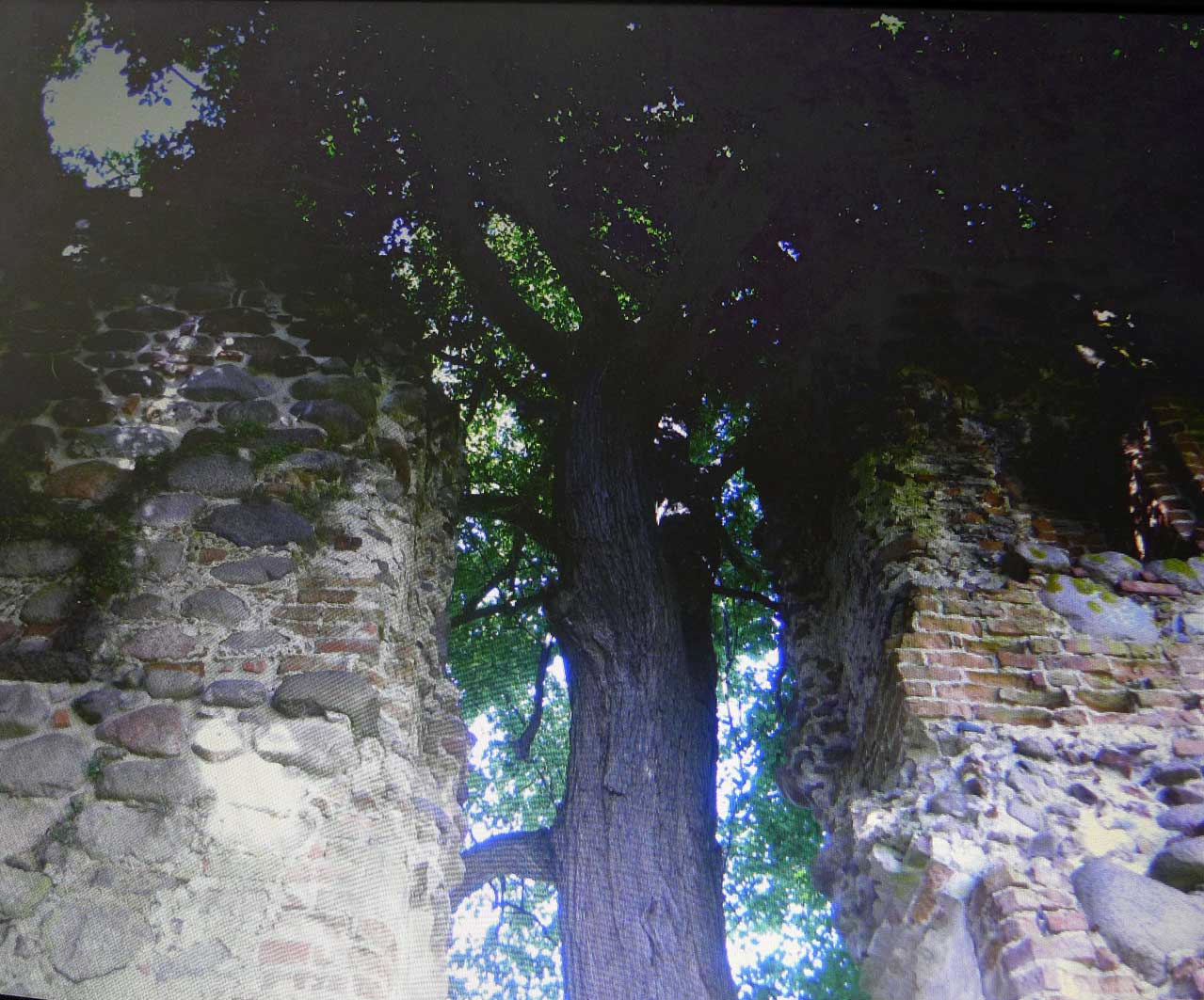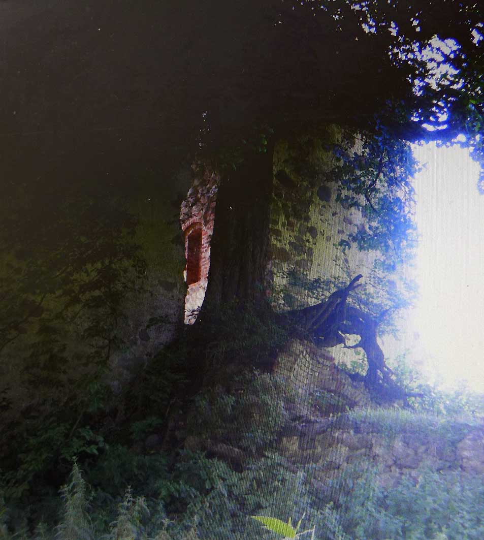 die andere Postkarte, auch freundlich und aufmerksam zugeschickt, zeigt, was heute mühsam zu erkennen ist, nun ohne Bäume und Würde der Fenster. Dahinter war der Hof und dann die Unterkunft des Verwalters vom Gut später der Gefangenen, mit erstem Projektionsort der Filme auf 8mm vom Leben auf dem Gut hier im Kriege, des letzten Krieges und danach Tanzboden und Theater. Die Koppeln dazu im Osten wurden zum Kap-Hof der LPG in Richtung Neubau und neuer Zentralschule