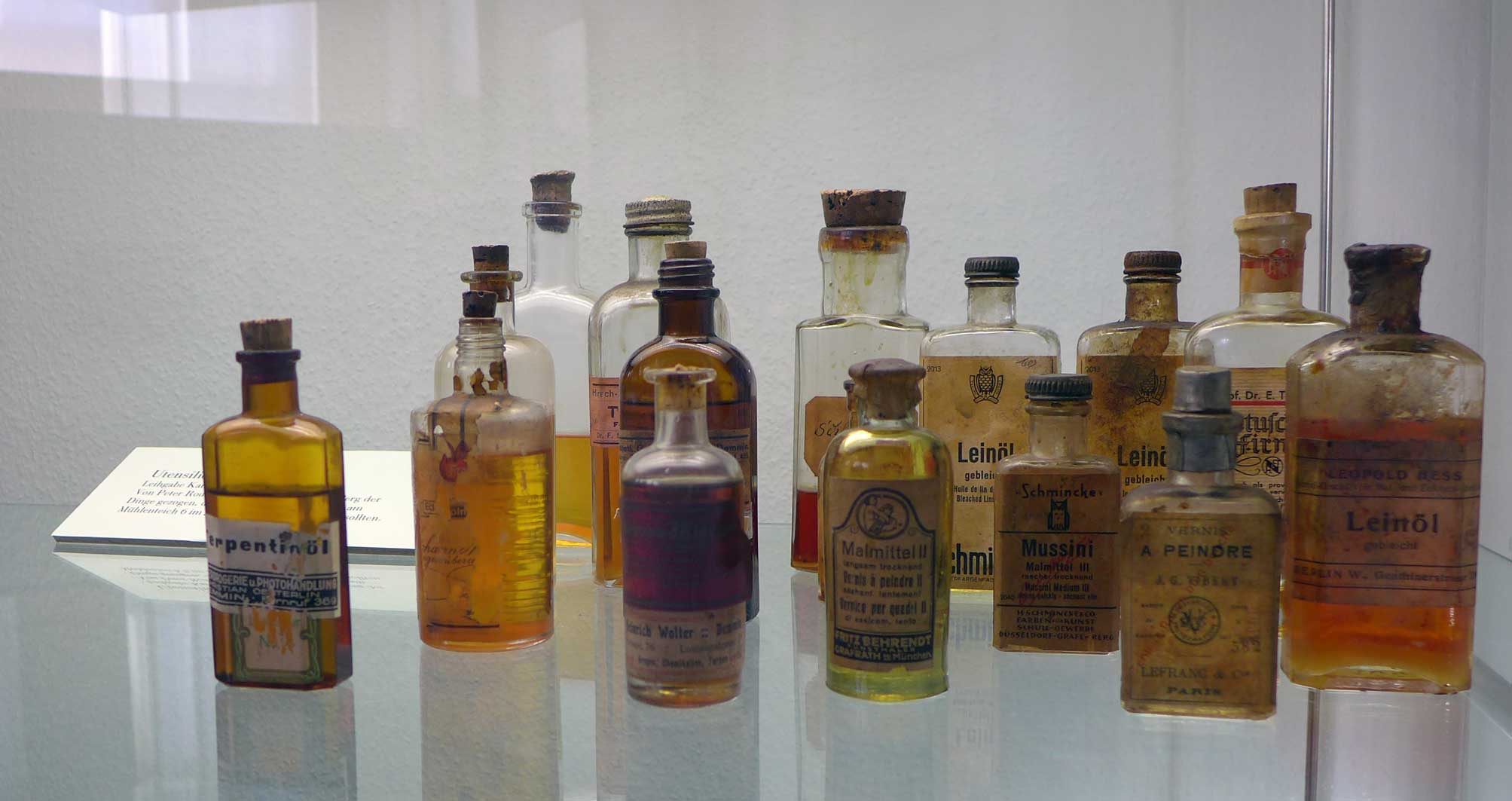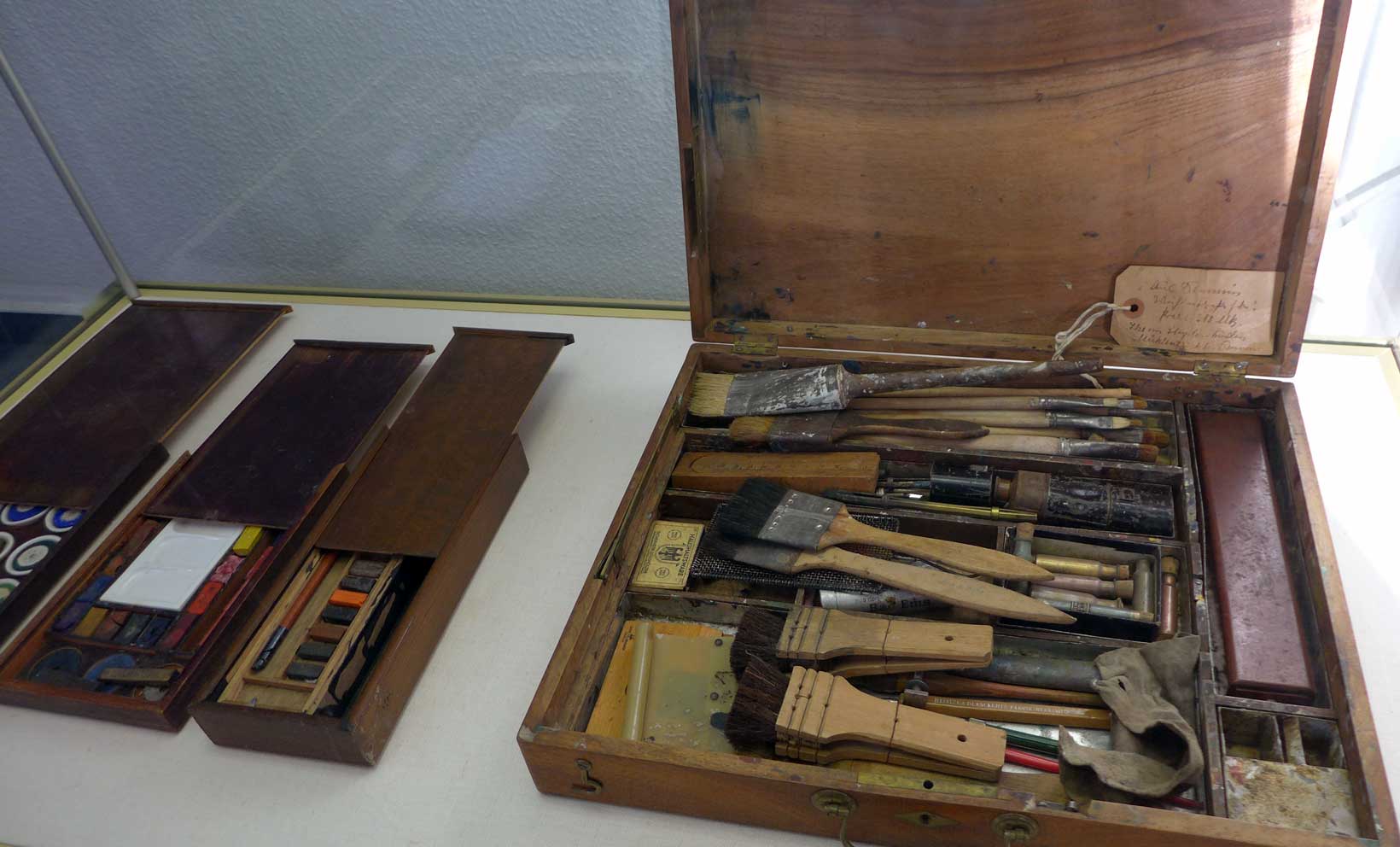 Die Farben und Werkzeuge der Ilse von Heyden Linden deren Bilder als Zeugnisse des Lebens aus diser Welt hier heute im Reg. Museum von Demmin geehrt werden.