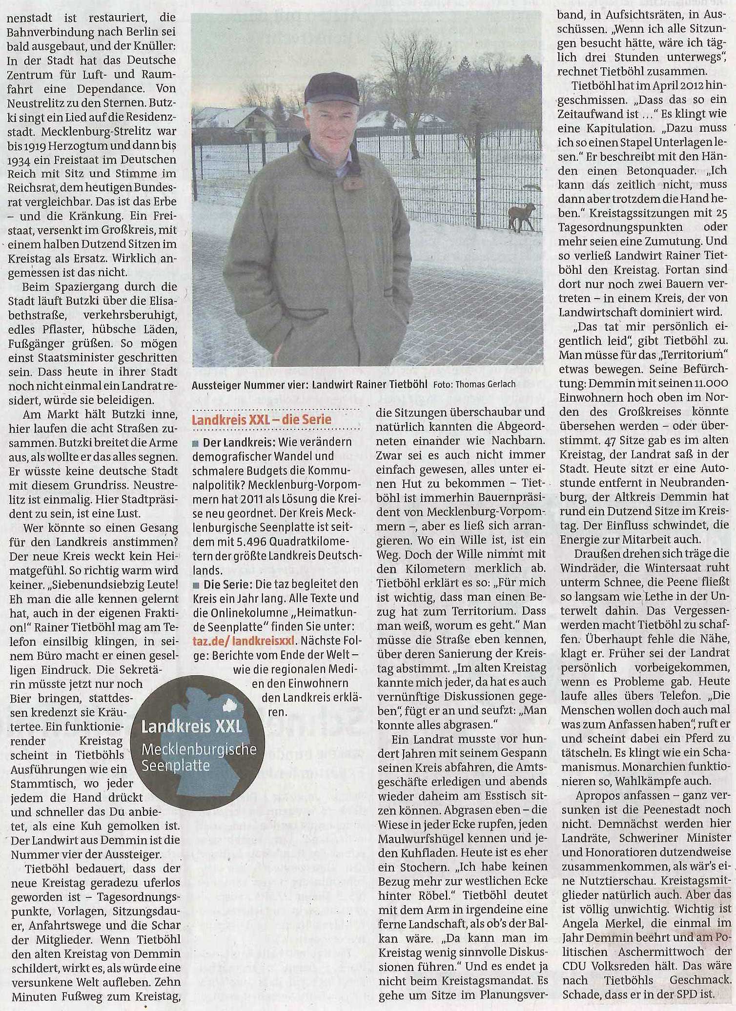 R. Tietböhl der Nachbar hier in Nossendorf, der Landesbauernpräsident, der Spender für den Turm in Nossendorf verliess seinen Sitz im Kreistag. Warum.