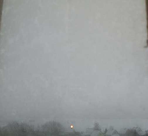 hinten an der Trebel die Wälder schmal auf der anderen Seite. und nun auch schon die Sonne hoch, im Nebel