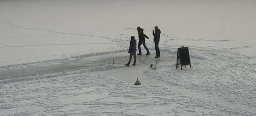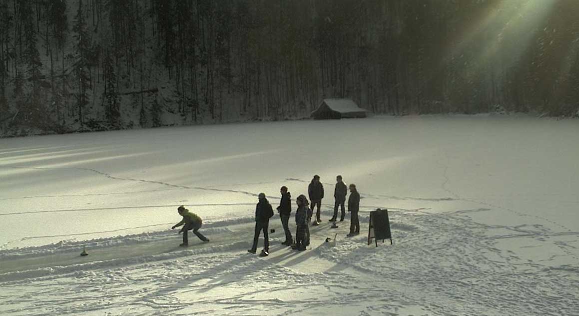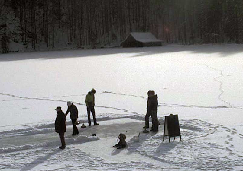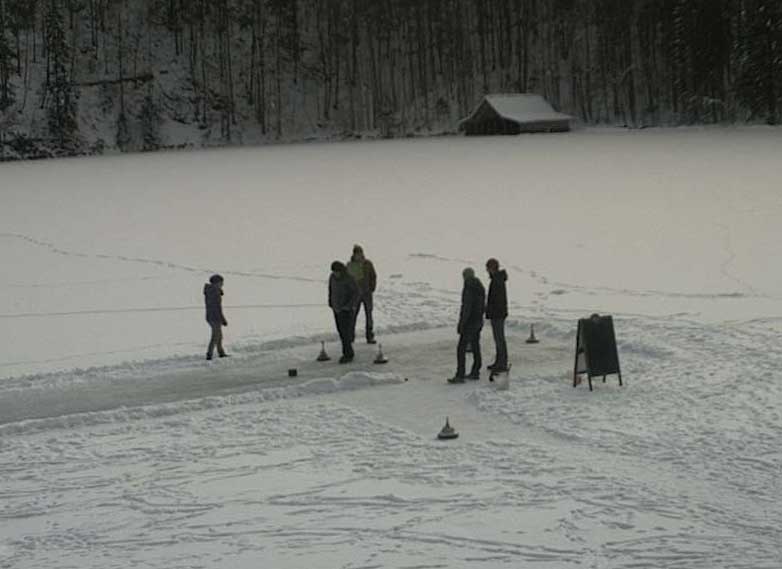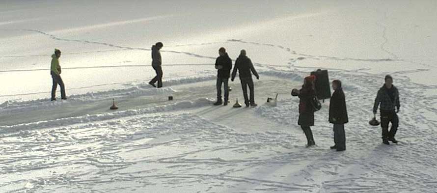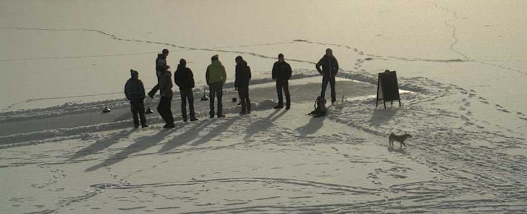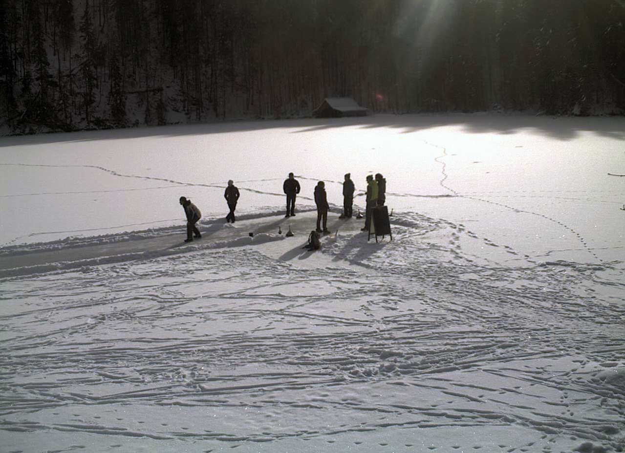 und einer geht auch schon mit seinem Eisstock von den andern geholt
