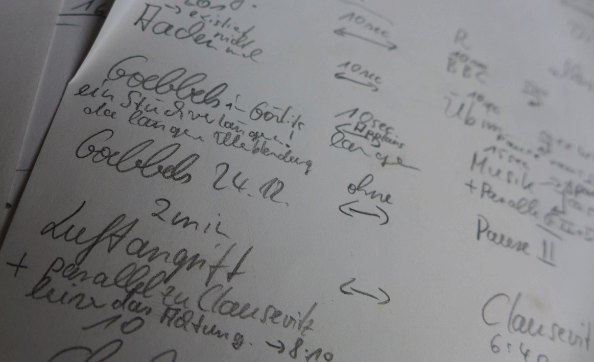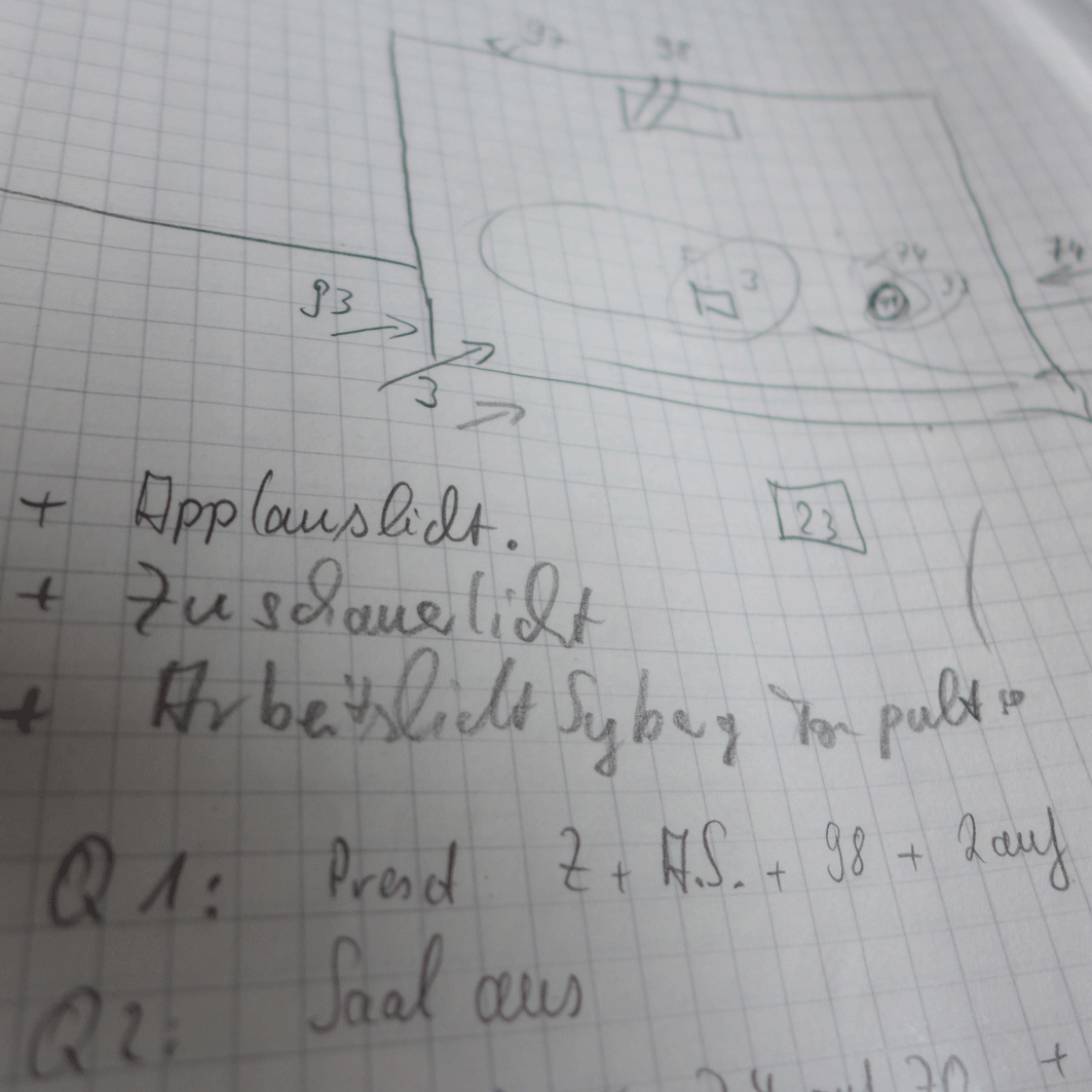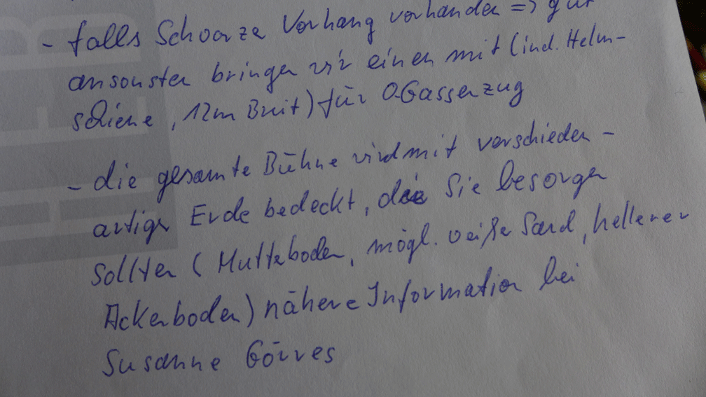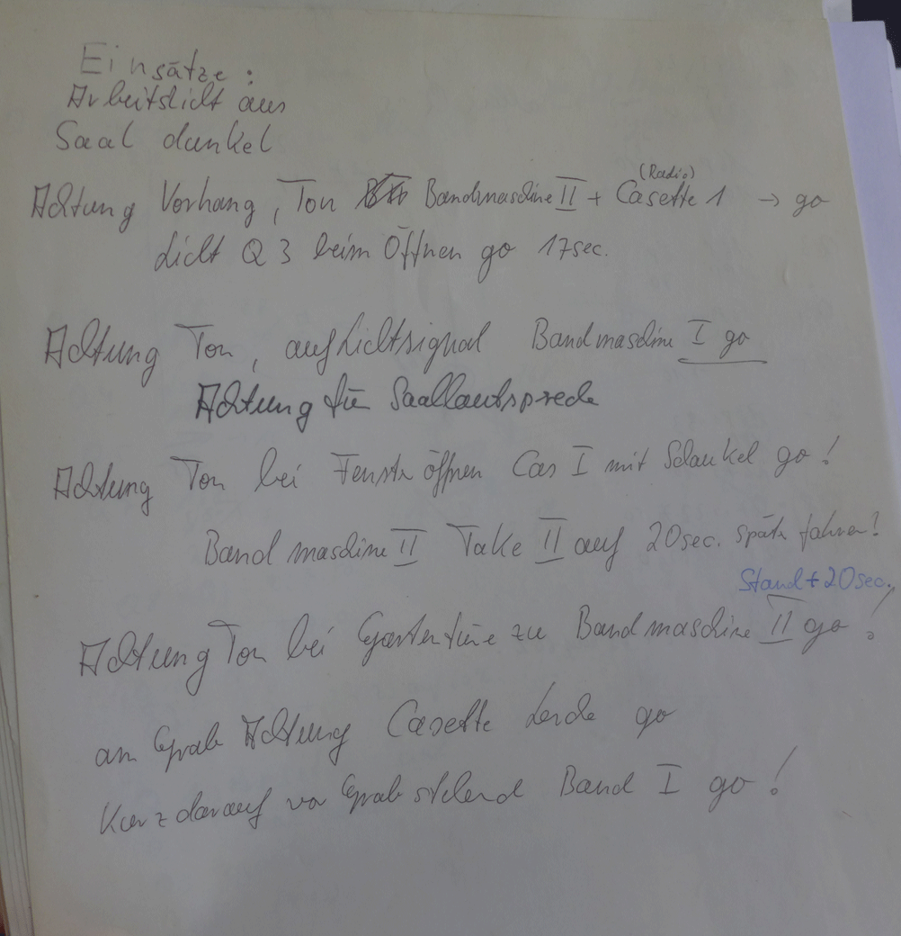 Nachdem ich mich immer um die Einsätze Ton, Licht, Stimmungen gekümmert hatte ich die Regieanweisungen, Stimmungen etc. immer gedanklich gespeichert. An die Erstellung der Toncollage im Tonregieraum des Hebbel Theaters kann ich mich noch gut erinnern, waren lange Nächte, teilweise sehr bewegend aufgrund der Toninhalte.
