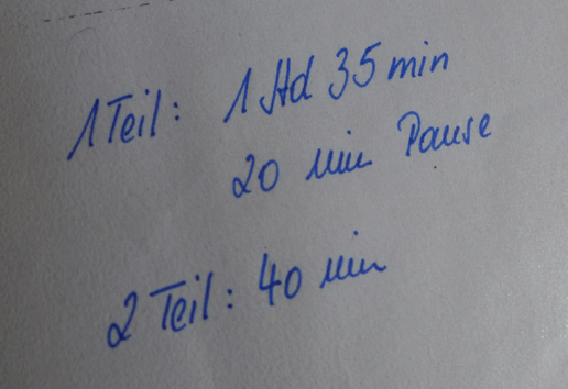 Die Anweisungen haben wir einmal gemeinsam – Susanne und ich - niedergeschrieben.