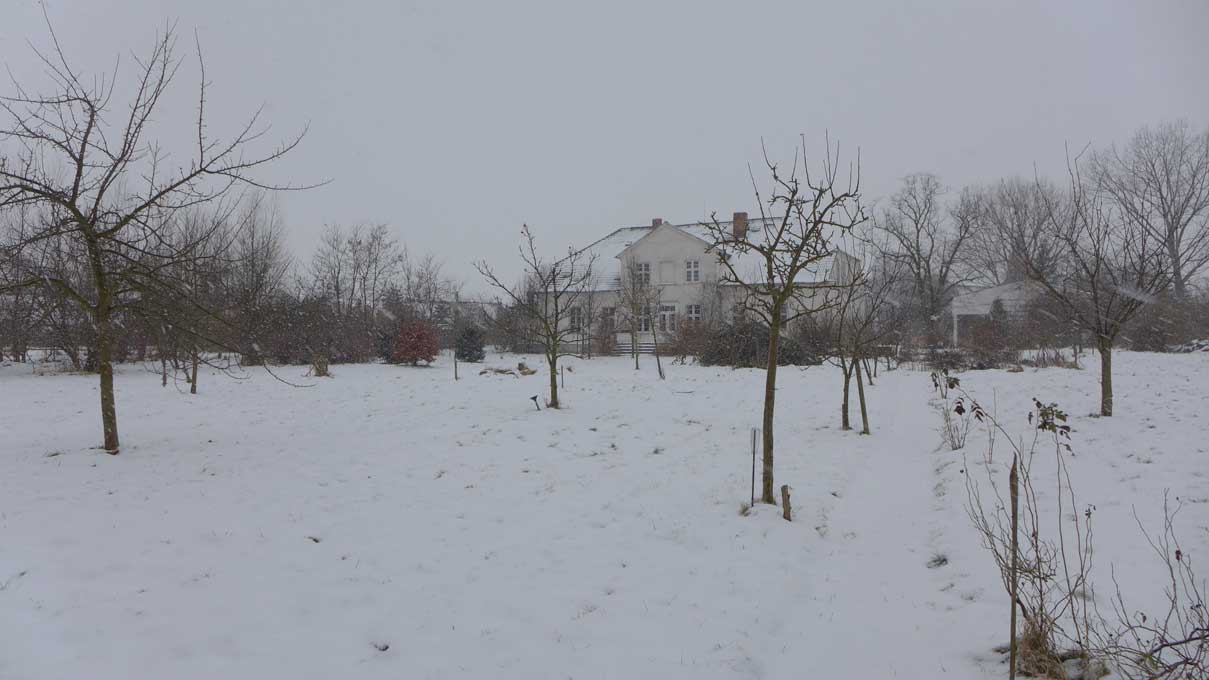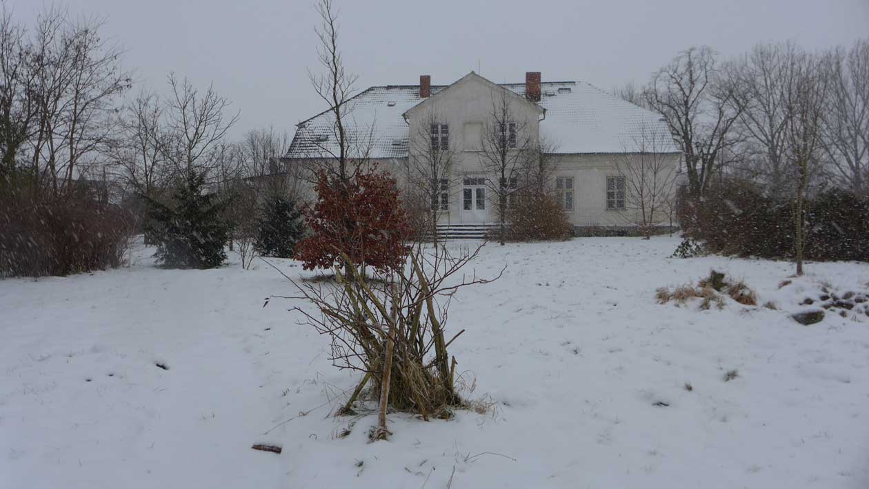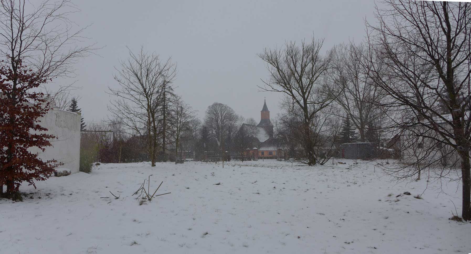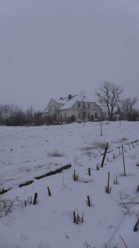 heisst in Nossendorf der einzige, der nun noch hier in Nossendorf, dem 3-Güterdorf früher, Landwirtschaft betreibt, -als Landwirt eingetragen als Betrieb- lächerlich, ein Witz, gegen die hunderte Hektar der anderen in Tausende gezählt rundum von den Nachbardörfer betrieben. Aber Faustpfand auch eines anständigen Besitzes und hoffentlich auch einmal solcher Ernten ohne Ausbeutung der neuen Art an der Natur. Und doch. Man darf es im Zusammenhang mit dem auch anders wiedergegründeten Haus sehen, das nun wieder einem Gut in nuce vorsteht. Ganz anderer Art als Eigenheime rundum, der Dorferneuerungen aus öffentlichen Mitteln oder aus neuen Wendegewinnen,- aber alle hier sind noch von hier. Woanders ziehen inwischen die Grosskonzerne ein mit Verwaltern vor Ort.