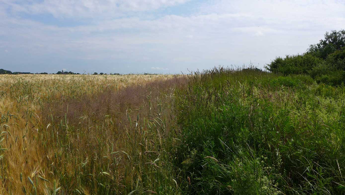 auf der anderen Seite des Hecken-Grabens dann Tietböhls Land, immer am Rande der Trebelauen entlang.