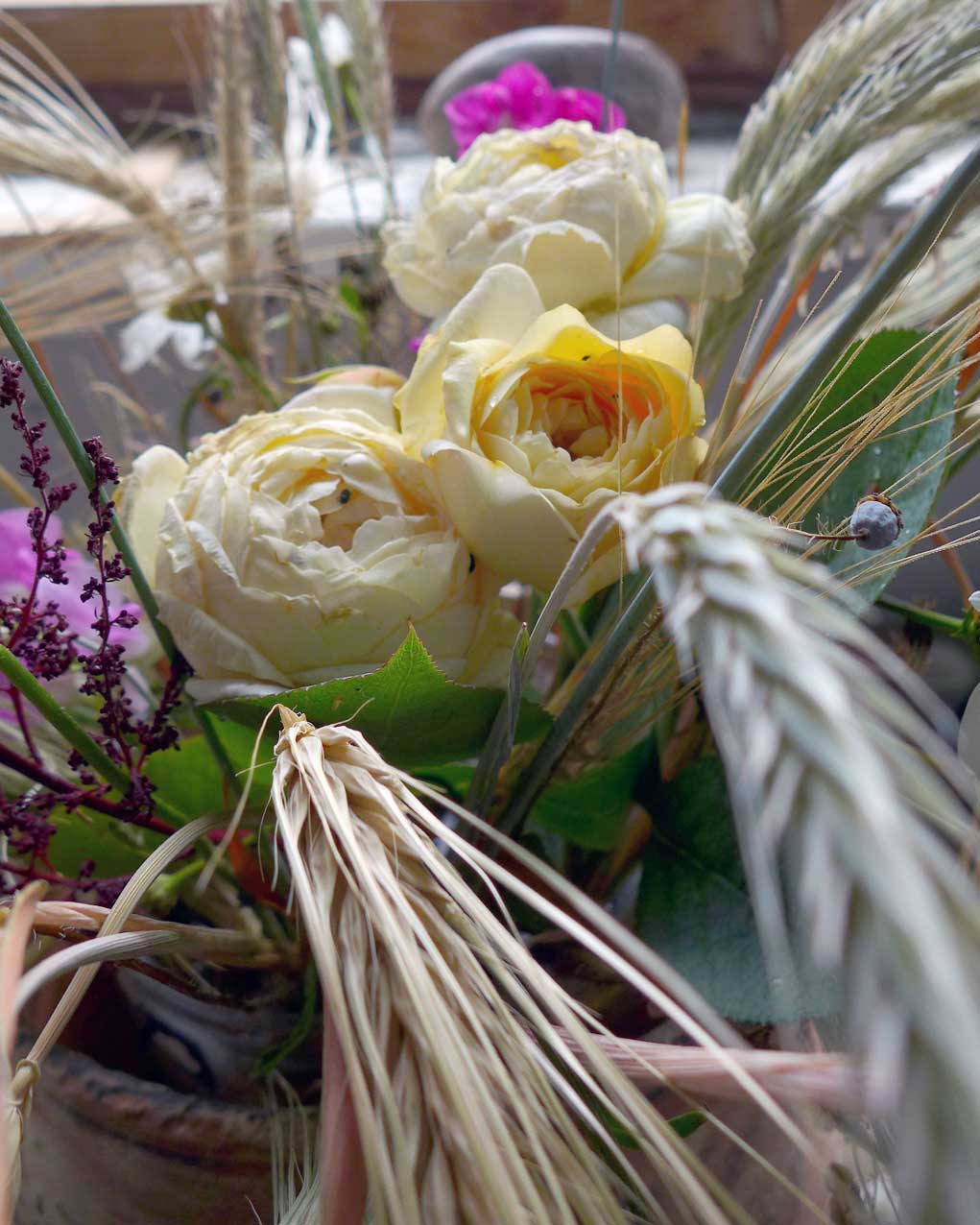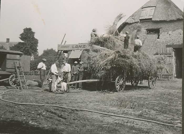 Das Gutshaus lebt wieder von den Ernten der Felder. Unter dem Turm gesegnet. Daneben die letzte Ernte-Eintragung des Vaters ins hist. Nossendorf-Album.