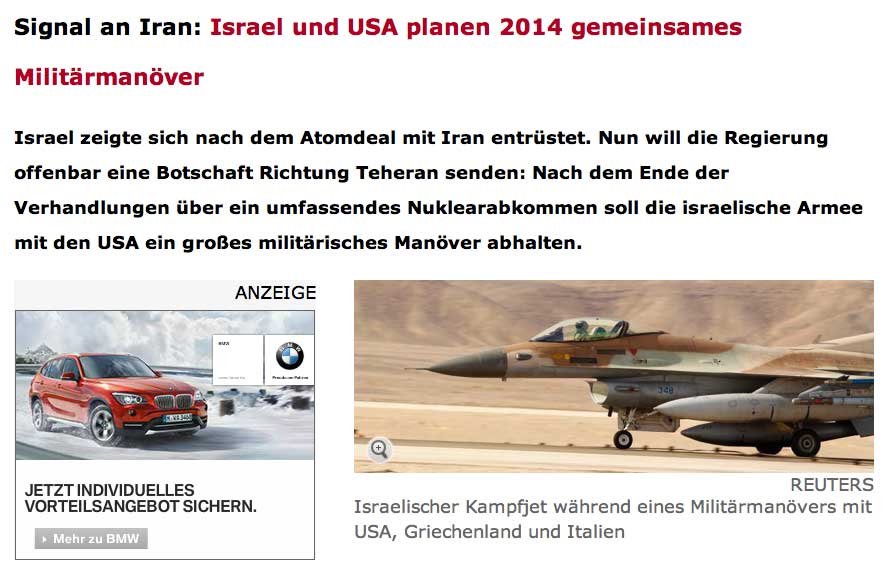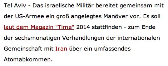 Der Zeitpunkt ist offenbar mit Bedacht gewählt: Israel sehe das im Mai vorgesehene Training als Botschaft an Teheran, berichtet das US-Magazin unter Berufung auf einen ranghohen israelischen Repräsentanten, der namentlich nicht genannt werden wolle. "Es wird groß werden", habe er gesagt.