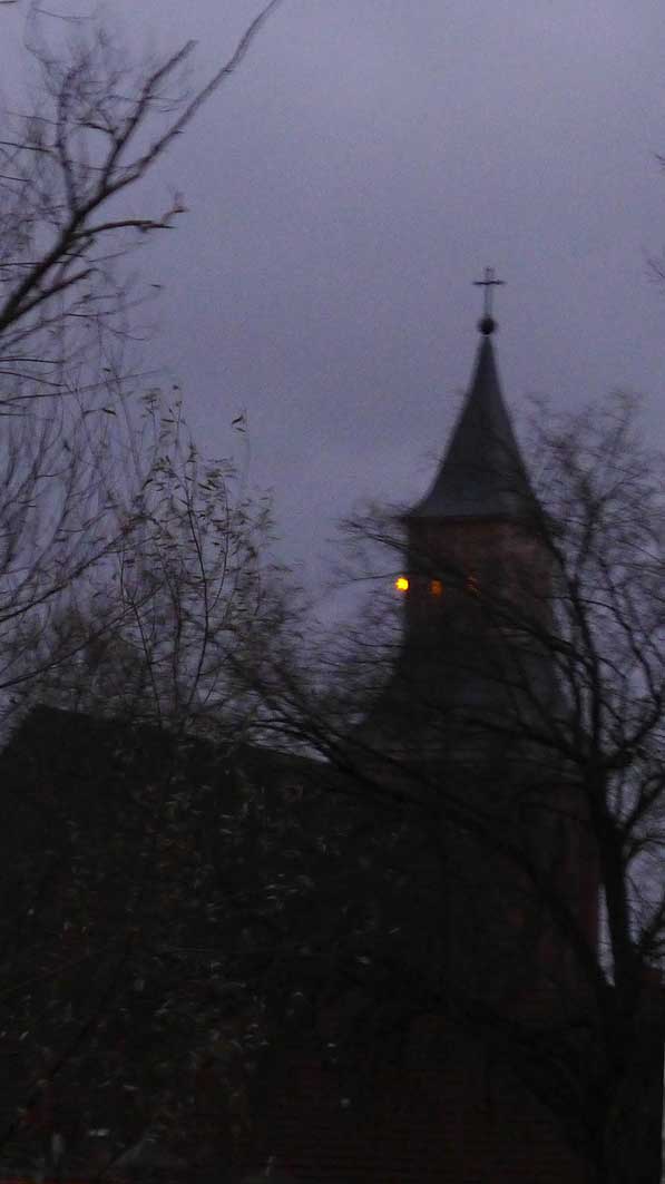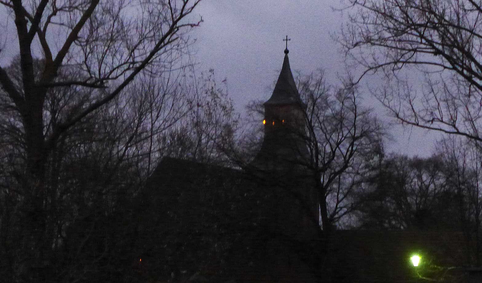 Damit die Lichter zusammenkommen, unten und oben und auf der Strasse auch. Nichts Böses im Bild. Der Blick durch die Lüfte ist frei.