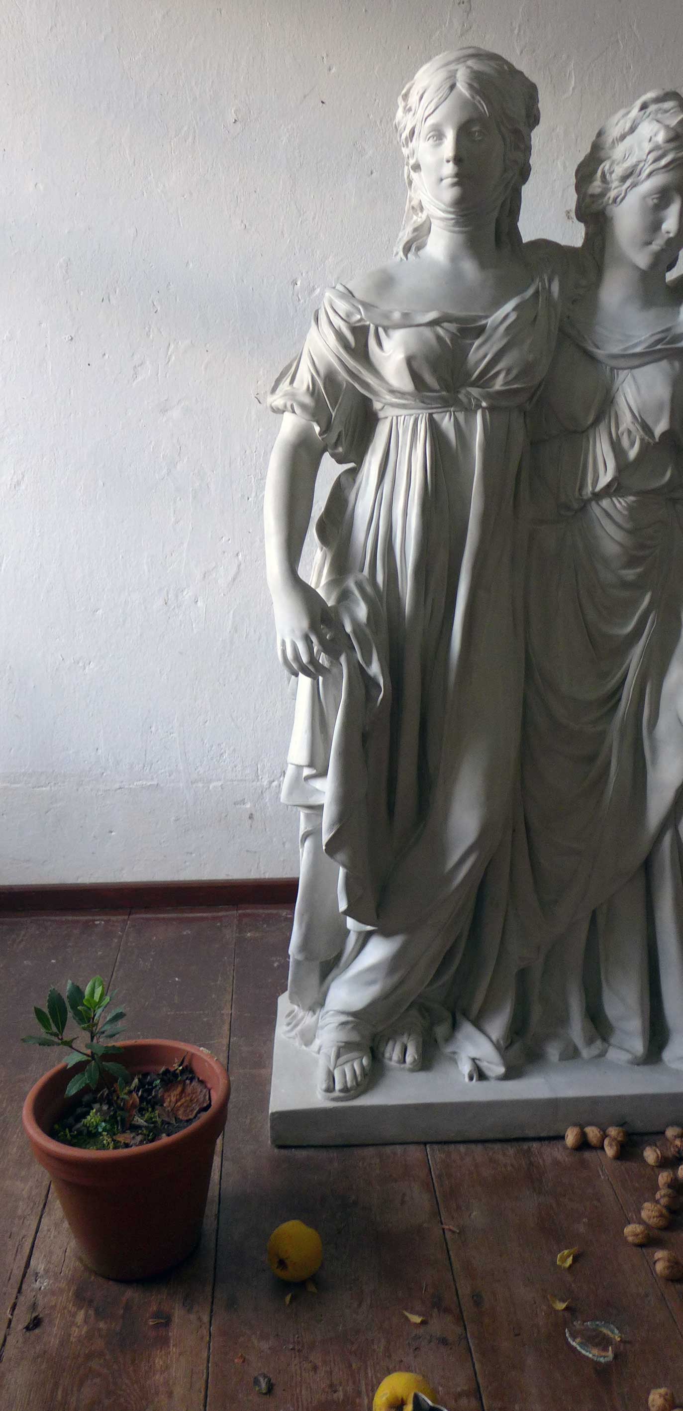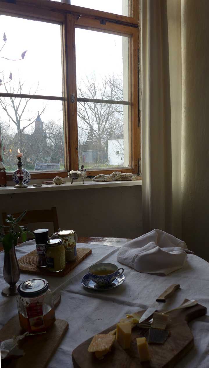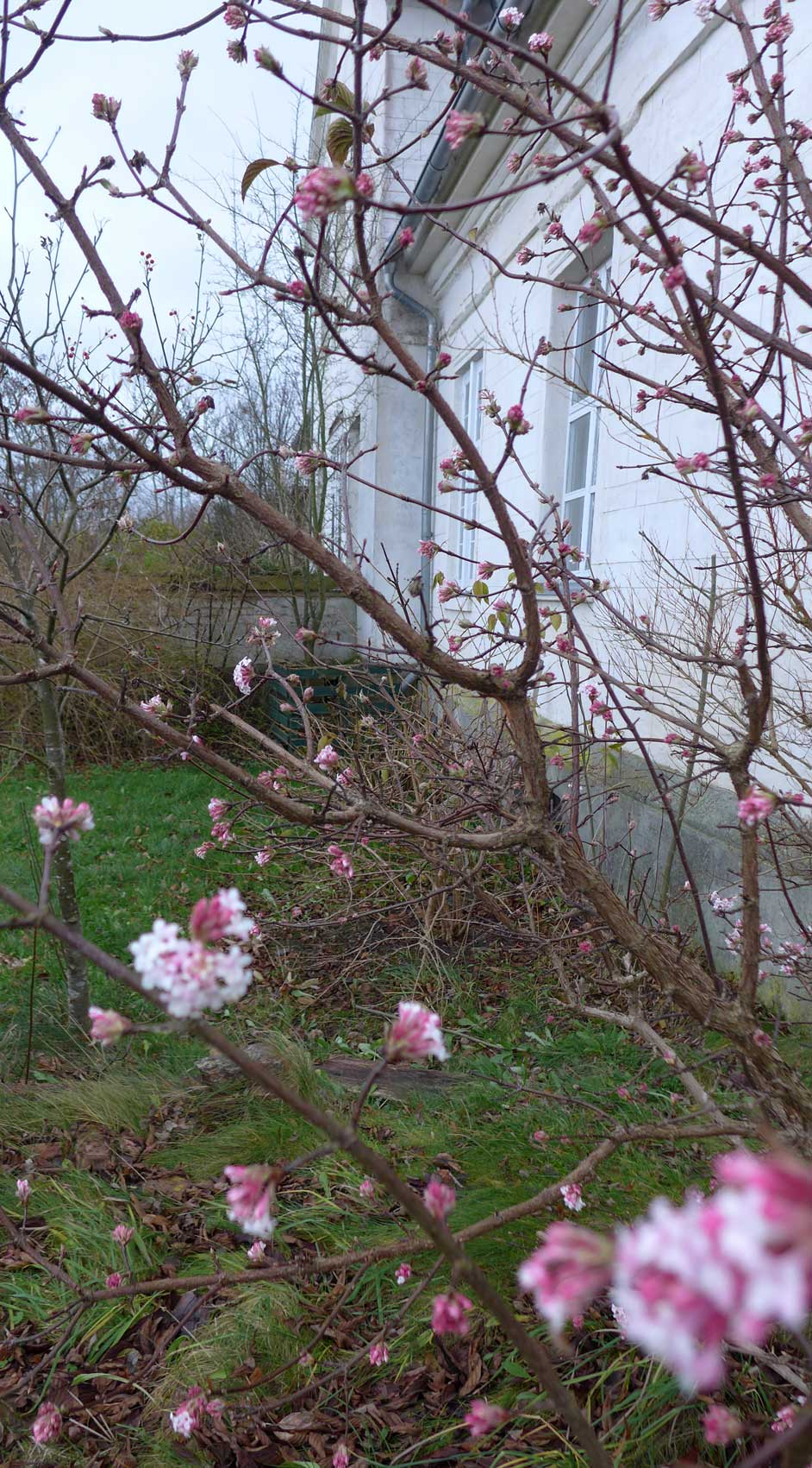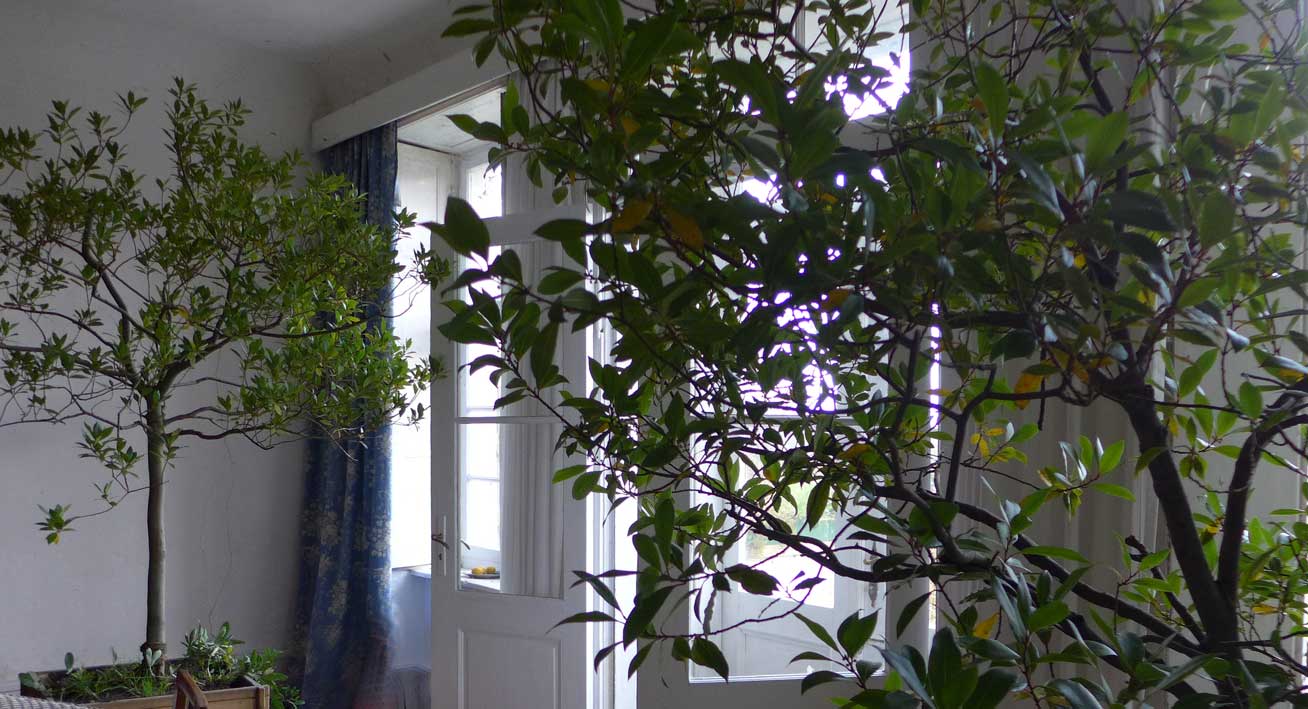 Die Lorbeerbäume wieder geborgen in Haus mit ersten Knospen wartend auf das Ende des Winters, der uns noch bevorsteht. Erhalten noch die alten Fenster und Läden wie Wunder. Noch immer. Nein nicht restituiert. Alles erworben und gut so, dann.