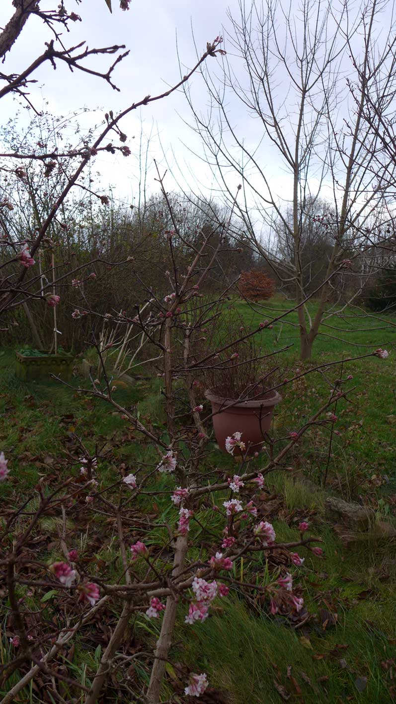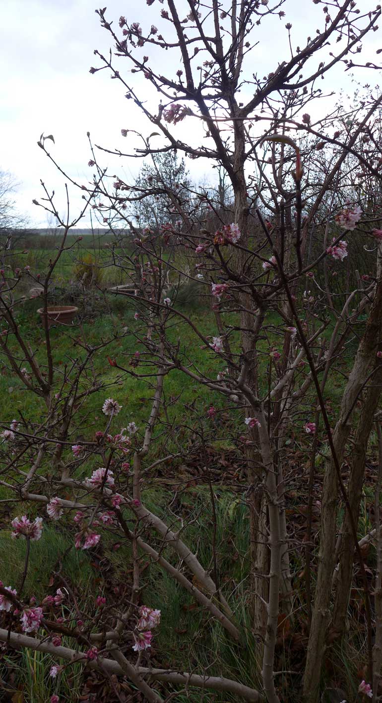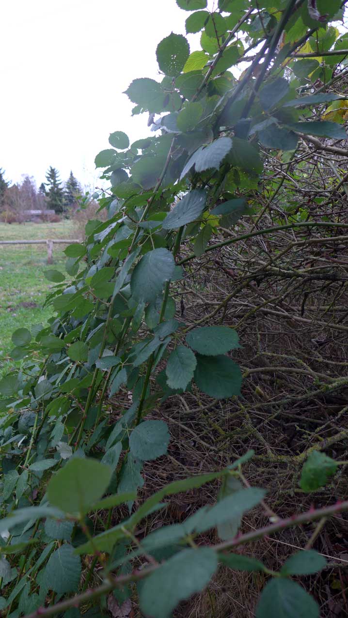 der gebrochene Flieder hat durchgehalten, feucht die Bruchstelle, wird man den überwuchernden Bombeerstrauch über den Blüten im Frühlung stutzen.