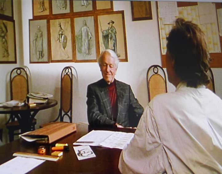 Auch war er, so naiv er im besten Sinne war, so nahe war er auch den Bildern und Geschichten und Tönen des Mythischen aus eigenen Welten, was ihm aber Wolfgang Wagner sofort abhandelte und untersagte, als W.Herzog Bayreuth über seine Hausgrenzen hinaus konzipierte und R.Wagner neu erfand. Also wurde der Lohengrin Herzogs für Bayreuth auf seine Statik der ihm unvertrauten Bühne kastriert und durch Eingriff Bayreuths selbst in der Regie ins Weite beschnitten. Ein Eingriff derer, die sonst jeden Unsinn ins Modische der Zeit gegen RW duldeten. Er hat das auch erkannt und als Folgen von Neu-Bayreuth akzepiert. Und mit der Annahme dieses Dokuments einer Hausreklame auf der Basis des Status quo einer who is who - und alle bei uns-Macht sogar belegt. So weiss er zu jeder Frage schon vorher die abgesprochenen Antwort, das ist zwar praktisch, unterhaltend poiniert verkürzend, aber ohne den Erafhrungswert des Suchens nach dem Sinn. Diese Öffentlichkeitsfalle, auch für RW immer seine wundere Stelle und für uns alle in dieser Abhängigkeit von Akzeptanz und Dialog mit der Welt dem Teufel nahe, von Bayreuth heute und den Medien als Auftrag angeboten, war zu bestehen, nicht Akteur einer PR-Aktion der geheimen Leiterin von Bayeurth ihrer Zeit und Tochter heute zu werden. Einer Dokumentation über Bayreuth von der Hand des Künstlers als Zeugnis eines nachsitzenden Schülers des Gewerbes und im einschüchterndem Haus, spannend, sensibel und handwerklich sauber, aber ohne jenen wagnerschen Neuerungsauftrag, wenn man in Bayreuth des Meisters vor ihm stehen will, so tief man dann auch vor den Offizielle heute fallen muss. In der Abwehr und des Entsetzens wie nur dort im Nicht-Stubenreinen die Höhe des Erkennens zu erlangen ist. Und das liegt bei RW immer in der Form und Gestalt von Tönen und Worten und letzlich auch im Fiktiven der Bühnenrealitäten als Auftrag an uns -und seies nun im Film oder hier.
