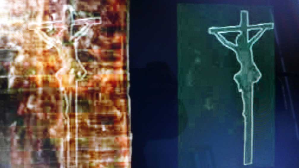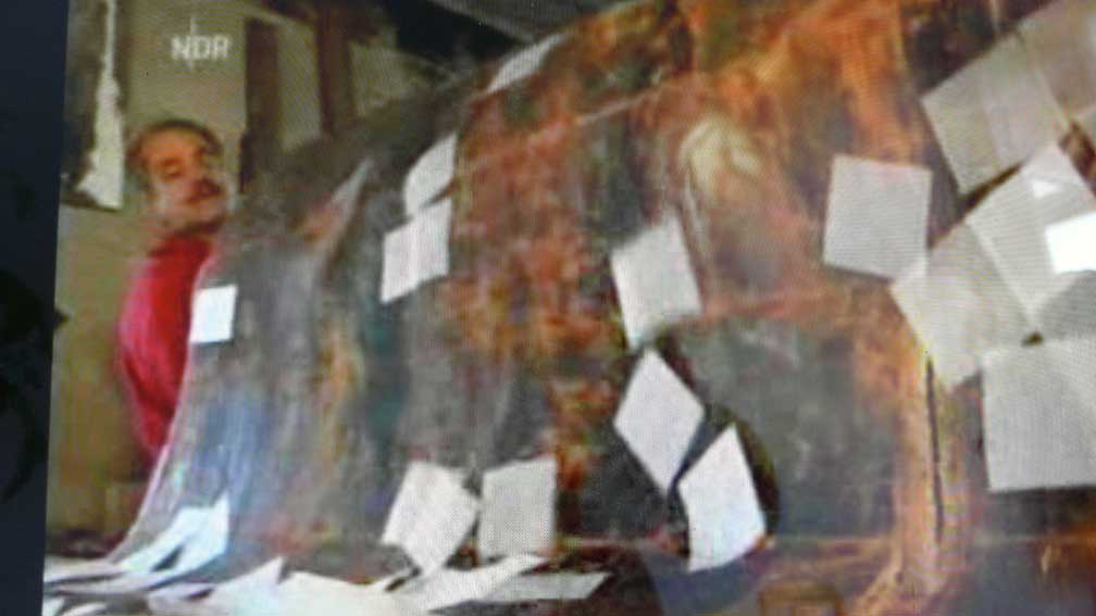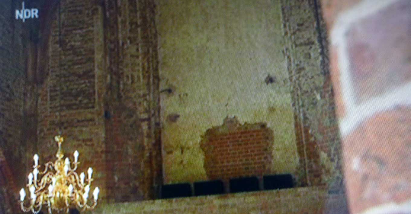Eine Montage auch zeigt das Bild in Nossendorf -also im noch dem Gottesdienst geweihten Raum- des Finders.