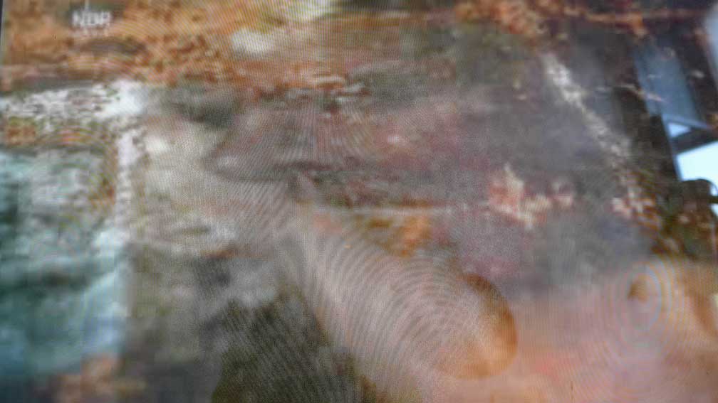 zur Geschichte des Fundes ist nachzutragen. Das Bild lag im Archiv des Museums als verscnürtes Paket, bis es W.Clemens auf eine Rolle entfalten liess. So fand ich es bei einer Archibbesichtigung, eher auf besiondere Nachfrage abseits. Wie seit 6o Jahren, solange sei es dort. Ohne Verwendung in der DDR. Und Beschädigt eben dadurch, dass sich die Überlegung ergab, ob es nicht mit den vertuschten Fluchtbewegungen 1945 zu tun habe als Strandgut der Katastrophe.