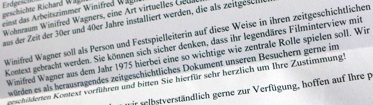 Das Sigfried - Wagner Haus war nach dem ruinösen Zustand des Haus es Wahnfried vollständig erhalten. Im Stil der Zeit und aus dem Gebrauch von Winifred Wagner. Vor und Nach Hitler. Der einzig authentische Platz seiner Aufenthalte. Mit dem Album der WW dazu. Wo ist es geblieben. Warum nicht wieder herstellen, nachdem Wahnfried selbst verloren ging. Und wohl ist, als Gehäuse der Zeit und derer, die darin gewohnt. Und derer, die darin wohnen sollten. Stattdessen ein museales Gefälle von mulitmediashow inklusive Winifred Wagner live auf knopfdruck? Wie sieht der Begleittext aus und die Linie der Absicht.