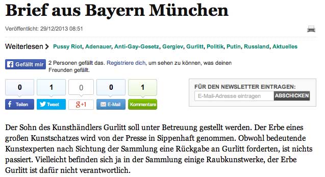 im Sinne eines Kreuzzuges und der jetzigen Spitze eines Eisbertges (FallGurlitt) mit Erweiterungstendenzen ohne historische und nationale Grenzen, nach Millarden Restitutionen in Österreich und Deustschland bisher, mit immer neuen Forderungen nach Gesetzesänderungen(Lex Gurlitt) als Modell für alle Länder der Welt. Und mit grenzüberschreitenden Auslieferungen.