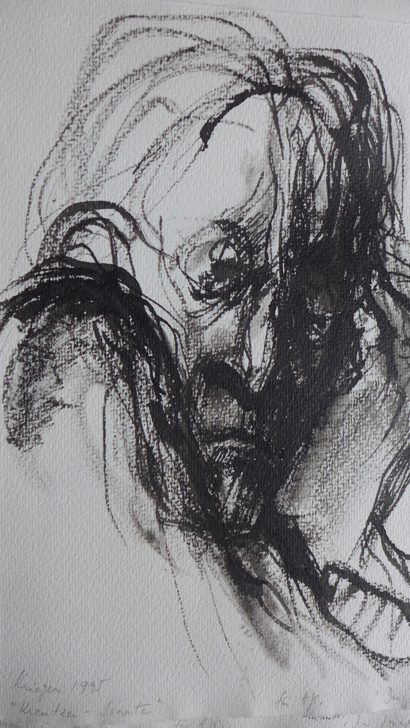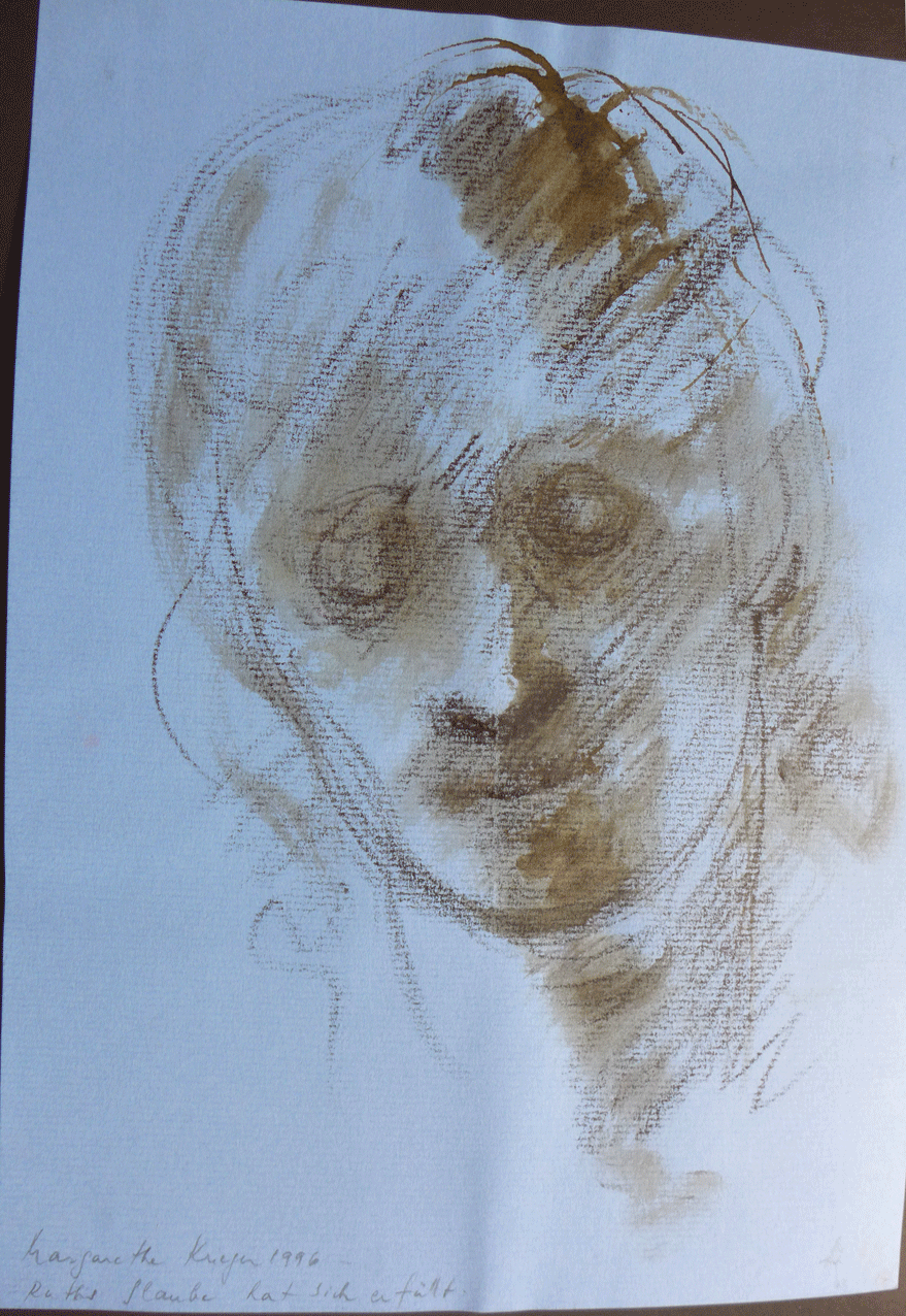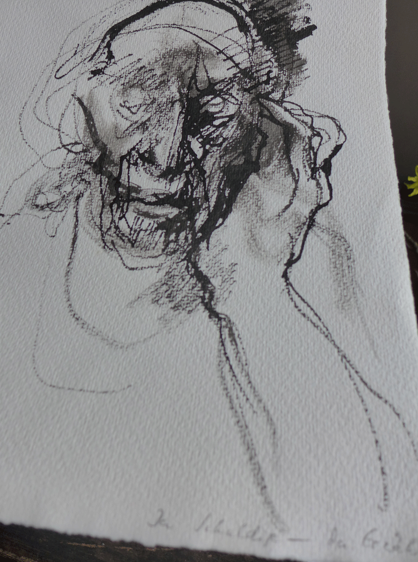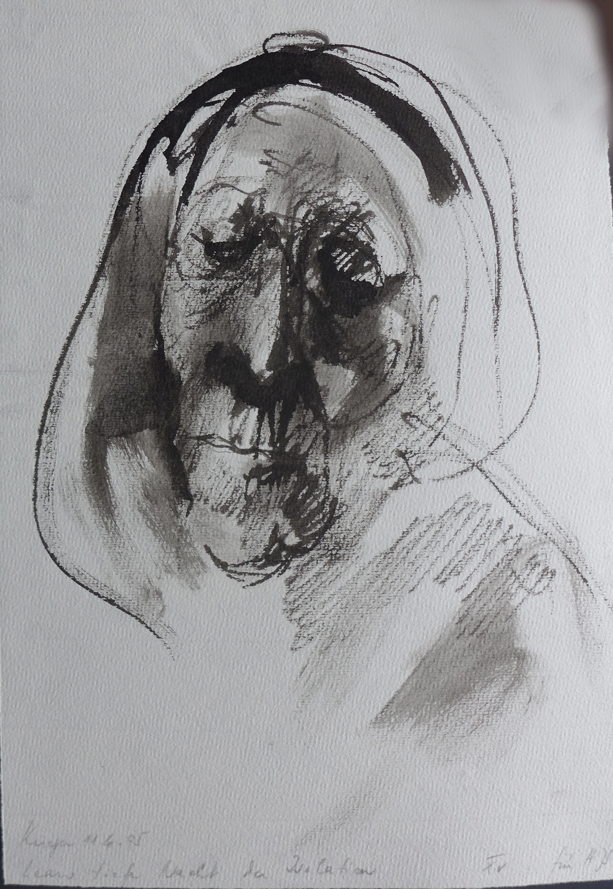 Sie haben nach ihrem Zusammenbruch ihr den Stift genommen und das Papier und sie eingesperrt - aber langsam wieder nun mit linker Hand und ohne Sprache nun fing sie wieder an, aus altem Wissen zu zeichnen.Gesichter jeden Tag eines. Ein Wunder. Dass viele sagen: wie nie. Dies sind die Bilder von davor.