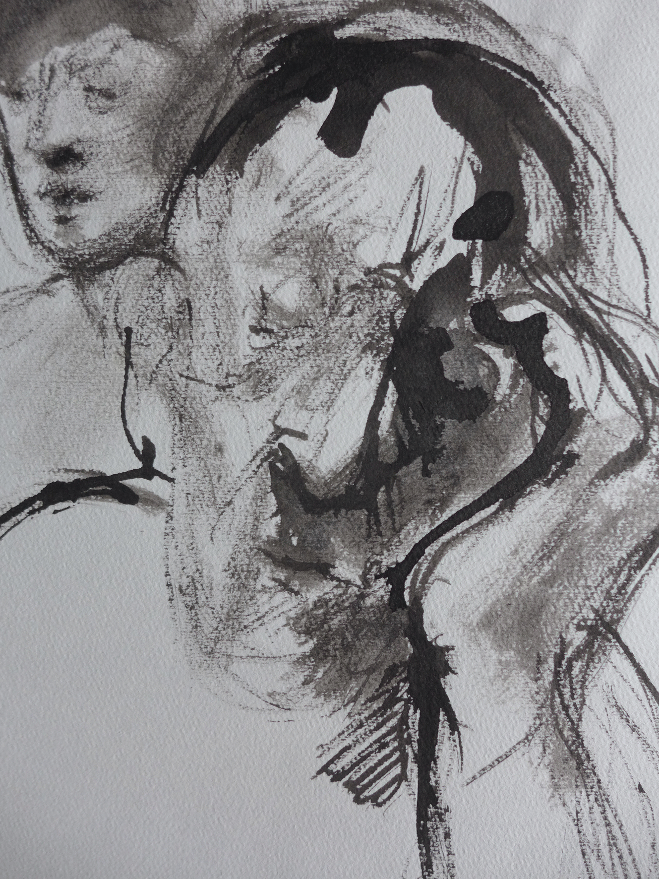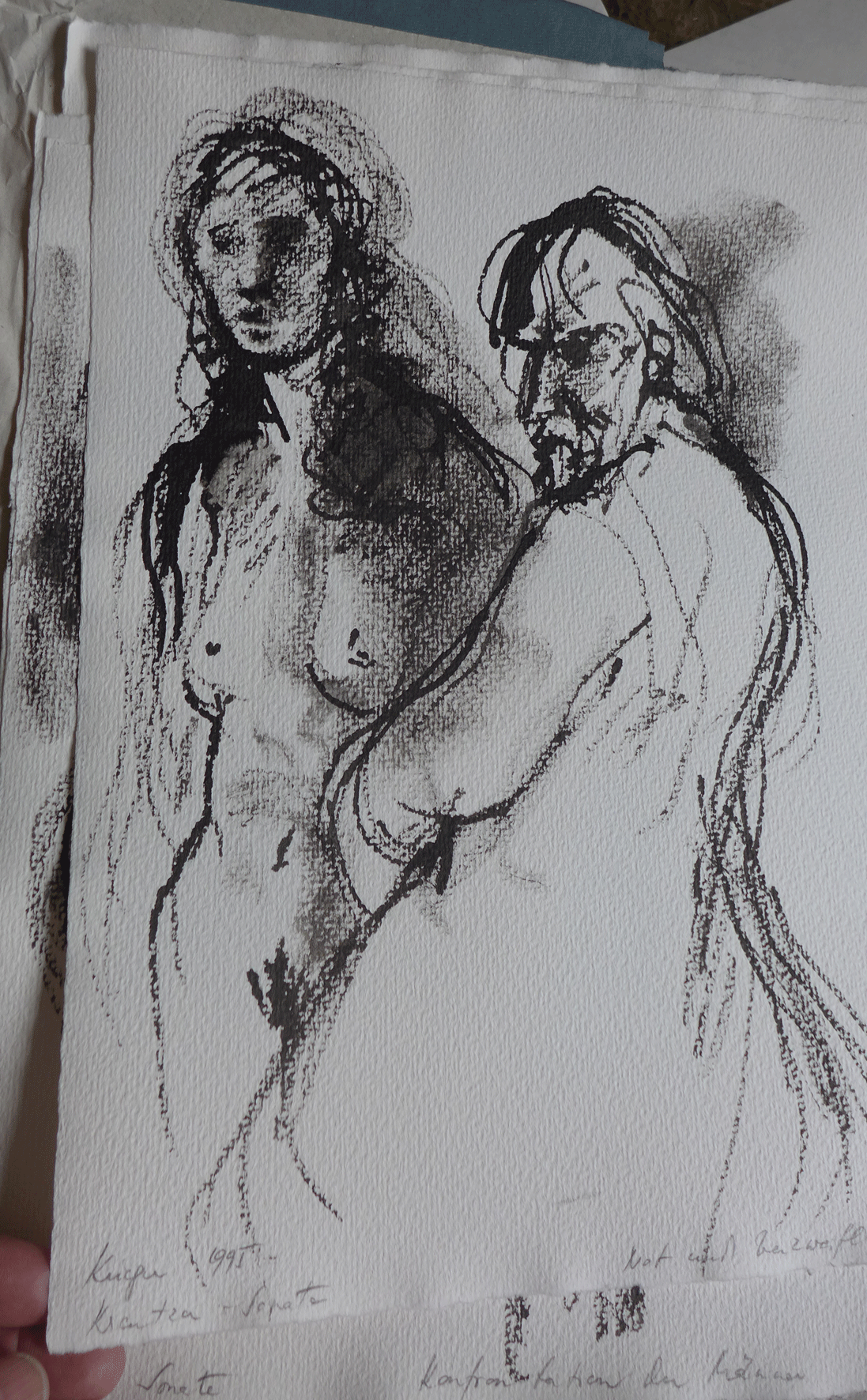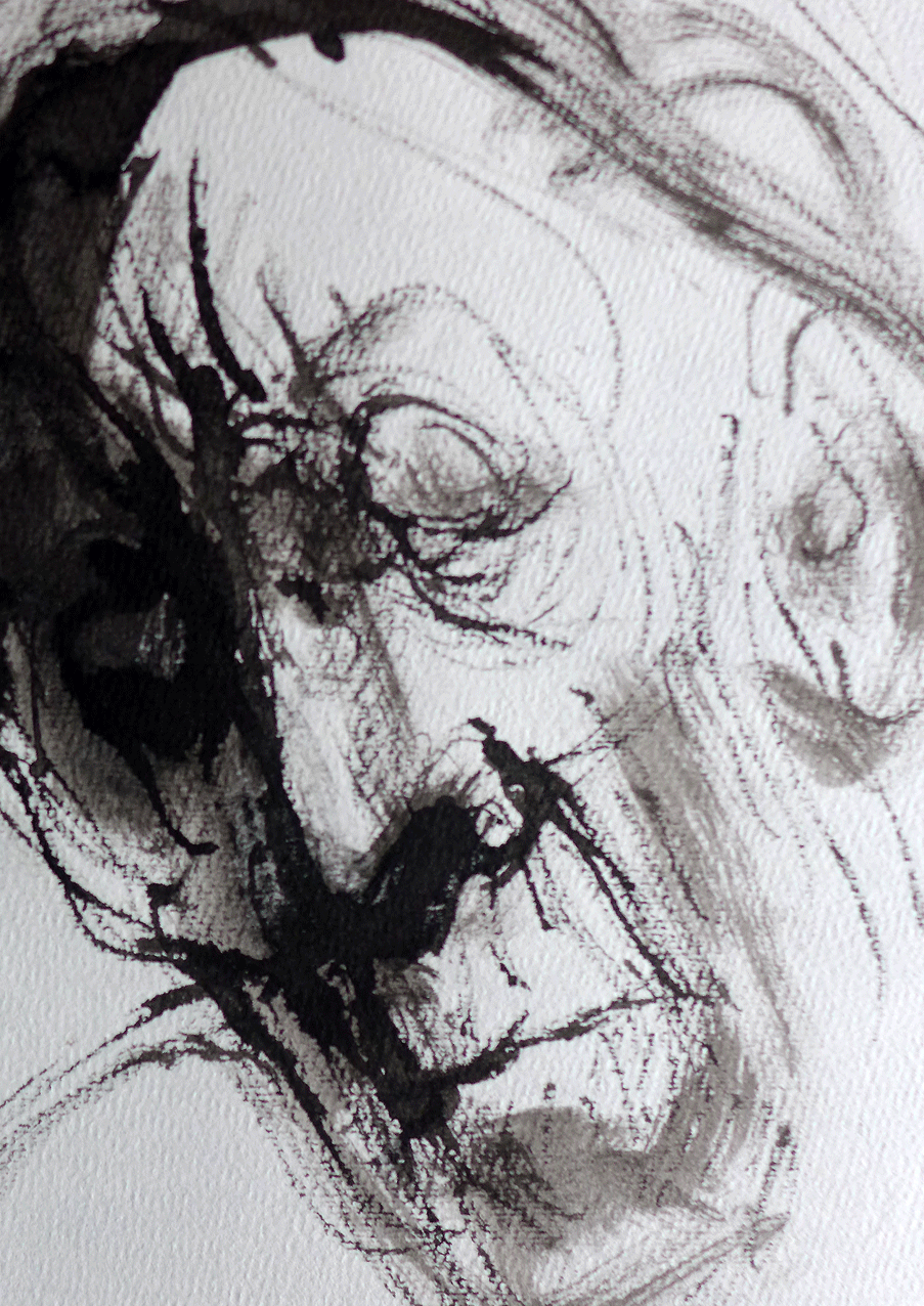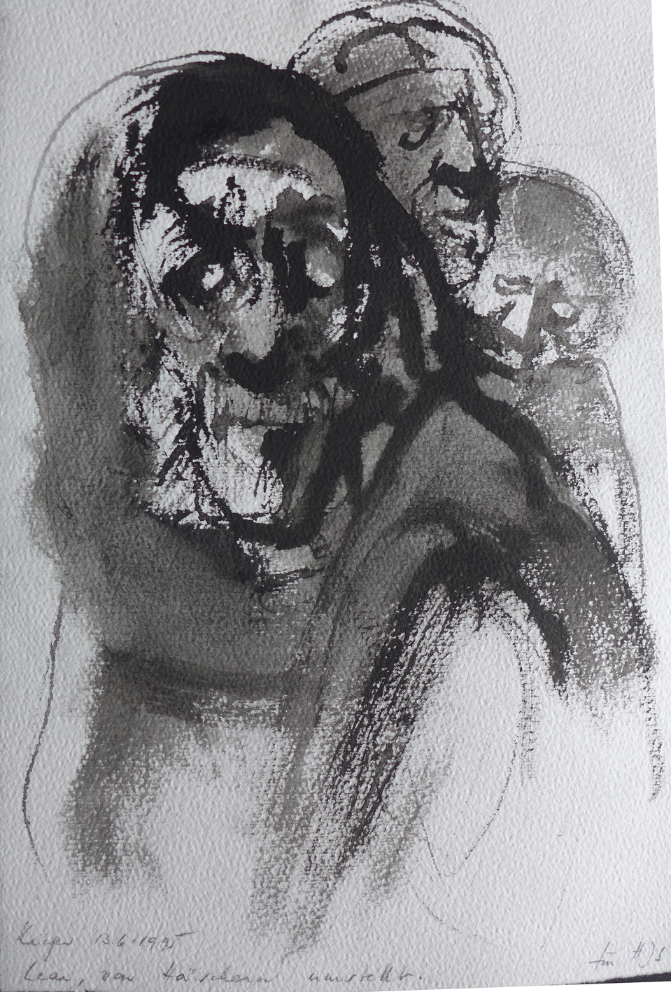 Sie haben nach ihrem Zusammenbruch ihr den Stift genommen und das Papier und sie eingesperrt - aber langsam wieder nun mit linker Hand und ohne Sprache nun fing sie wieder an, aus altem Wissen zu zeichnen.Gesichter jeden Tag eines. Ein Wunder. Dass viele sagen: wie nie. Dies sind die Bilder von davor.