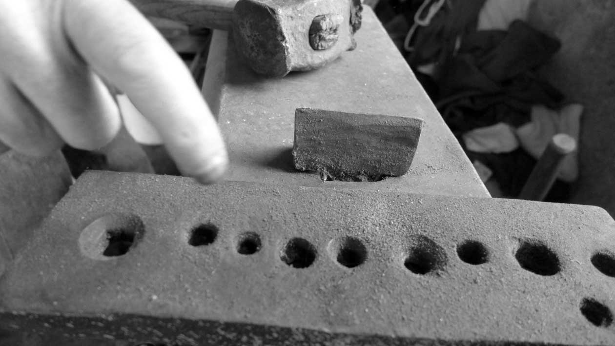 hier die Löcher für die Nägel zu schmieden nach verschiedenen Massen.