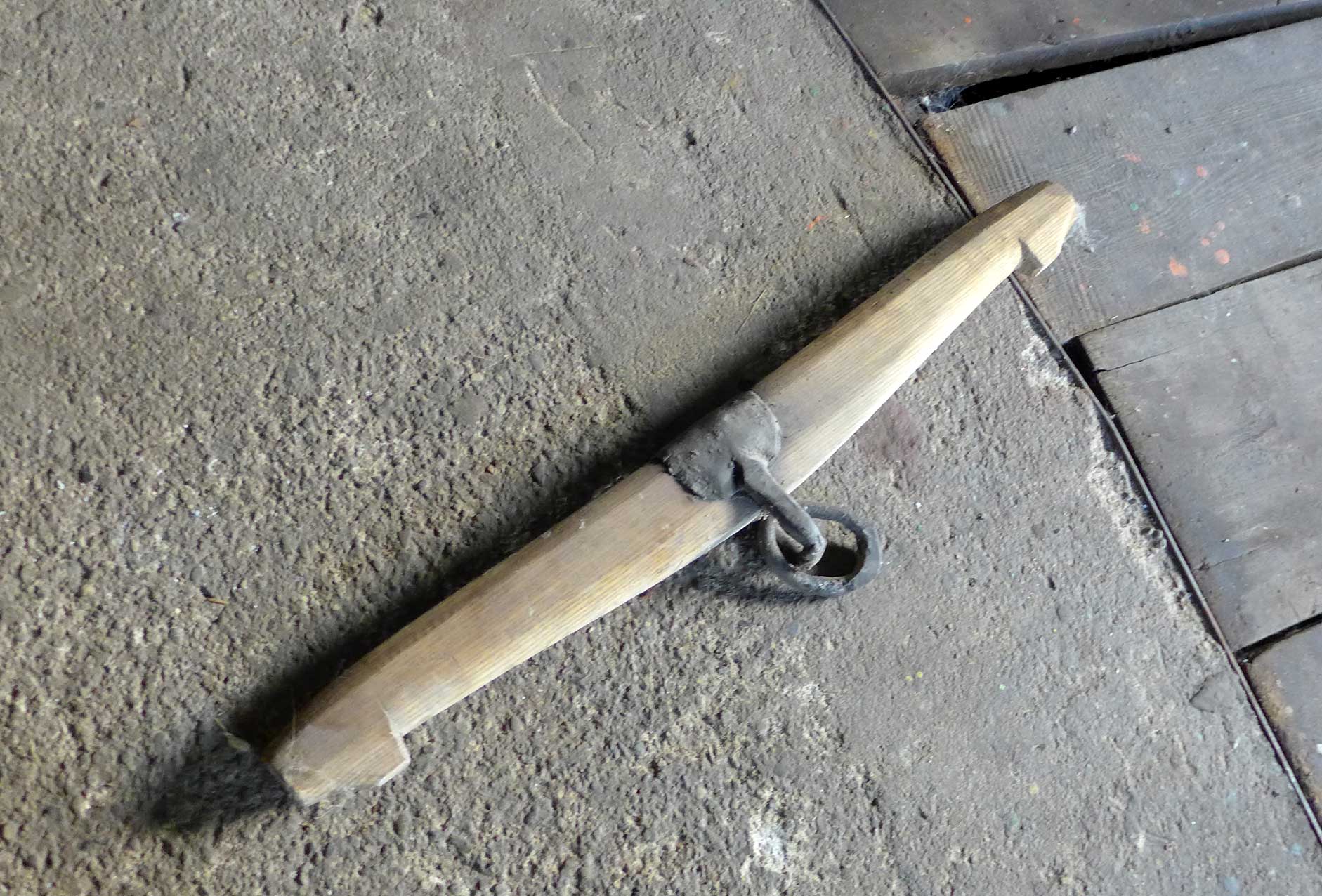 Und der, der hier nun wohnt, machte noch diesen Wagen-Schwengel zum Ziehen mit der Hand nach alter Art.
