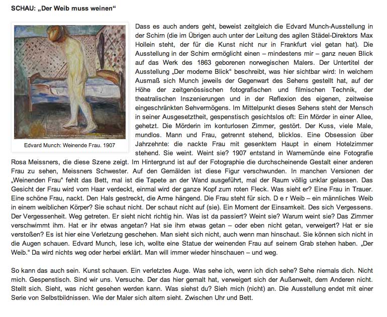 die Bilder in dem Buch Wiederkommen und Verschwinden lassen aus Stockholm zu E. Munch mit einem ganzen Kapitel, das wir nicht lesen können, haben uns animiert zu forschen was da los ist mit den Bildern zu Foto und gemaltem Bild aus Warnemünde vor hundert Jahren und dem Titel "weinende Frau".