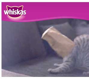 was hier witzige Reklame sein soll, wurde unserer vorbeigehenden Katze zur Realität, als sie Kopf in der Dose nicht mehr rauskriegte und dann einige Tage bei uns nach dem Tierarzt sich ängstige-vor allem.