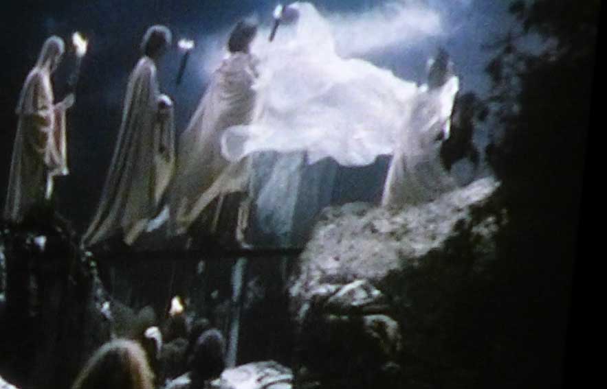 vorbei der Toten-Zug mit dem Sarg des gestorbenen Königs Titrel