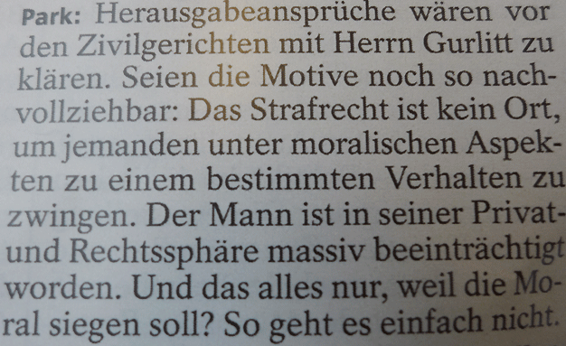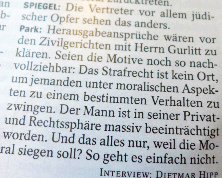 Wenn aber die Kunst und Kultur berührt werden, durch die wir uns verstehen, dann geht es um das Überlebens-Recht. Als Land und Individuum. Dann werden wir uns wehren müssen und sagen Nein. Hier ist die Grenze, wie auch immer die Interessen und Anwälte und Taktiken aufgestellt werden.