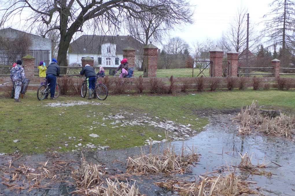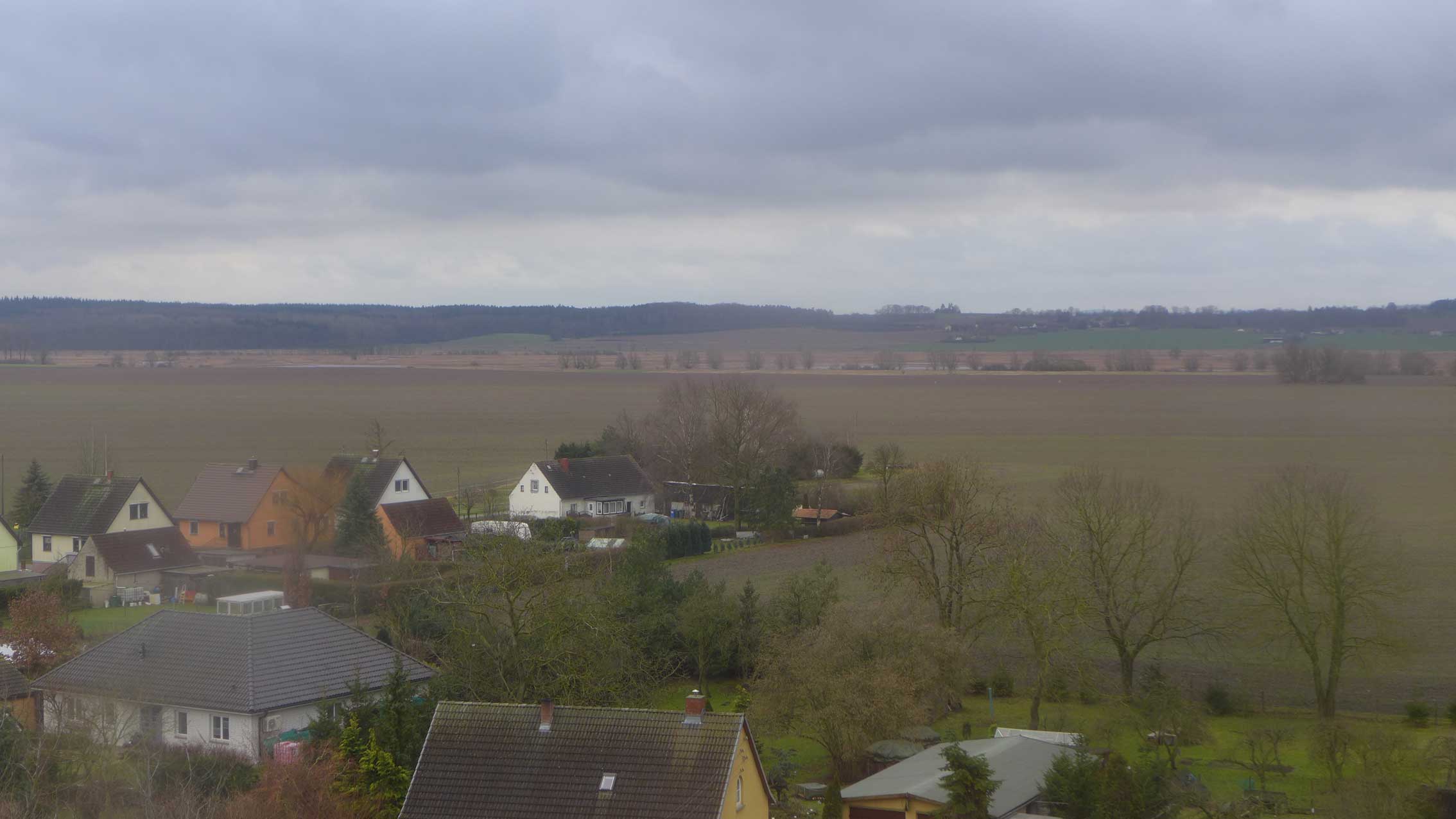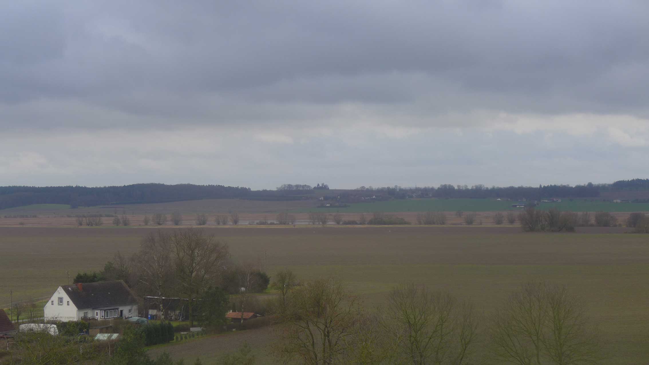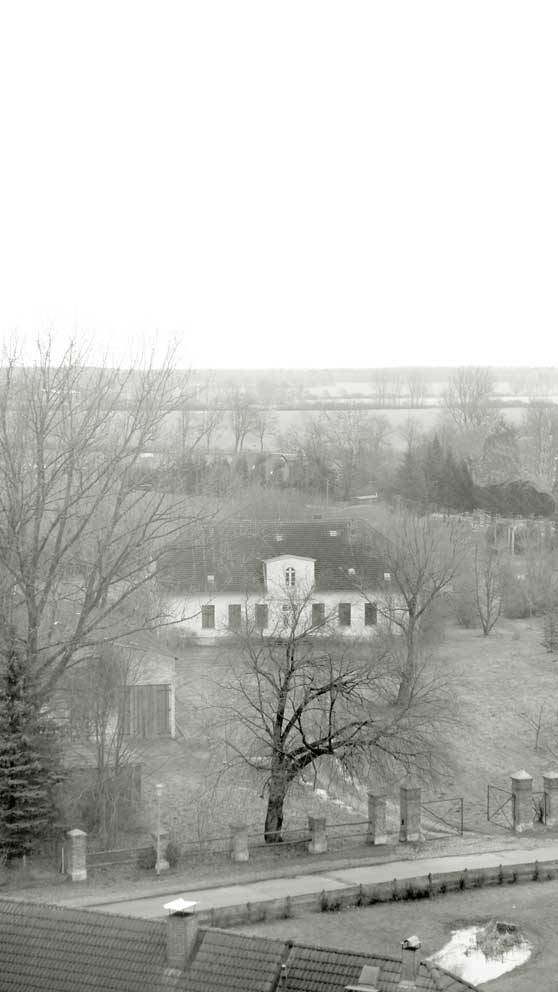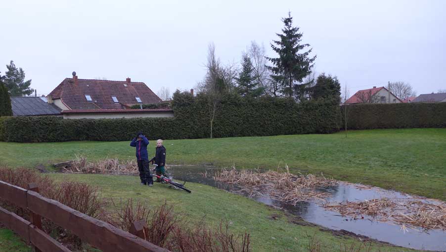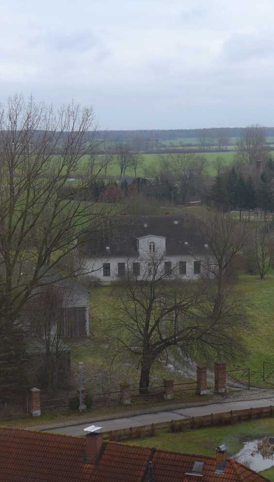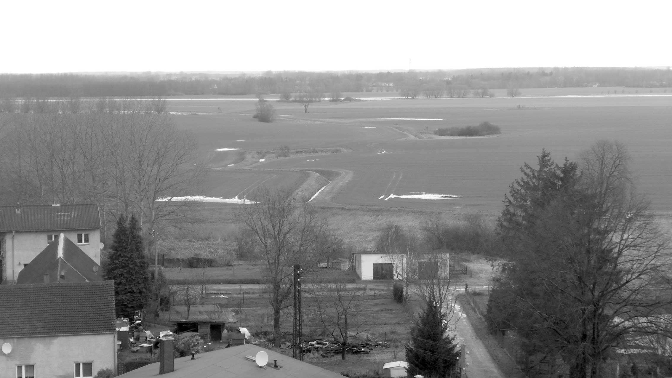 so also von oben der Gang von der Trebel Richtung Turm im scheunen Grün nach dem Schnee.