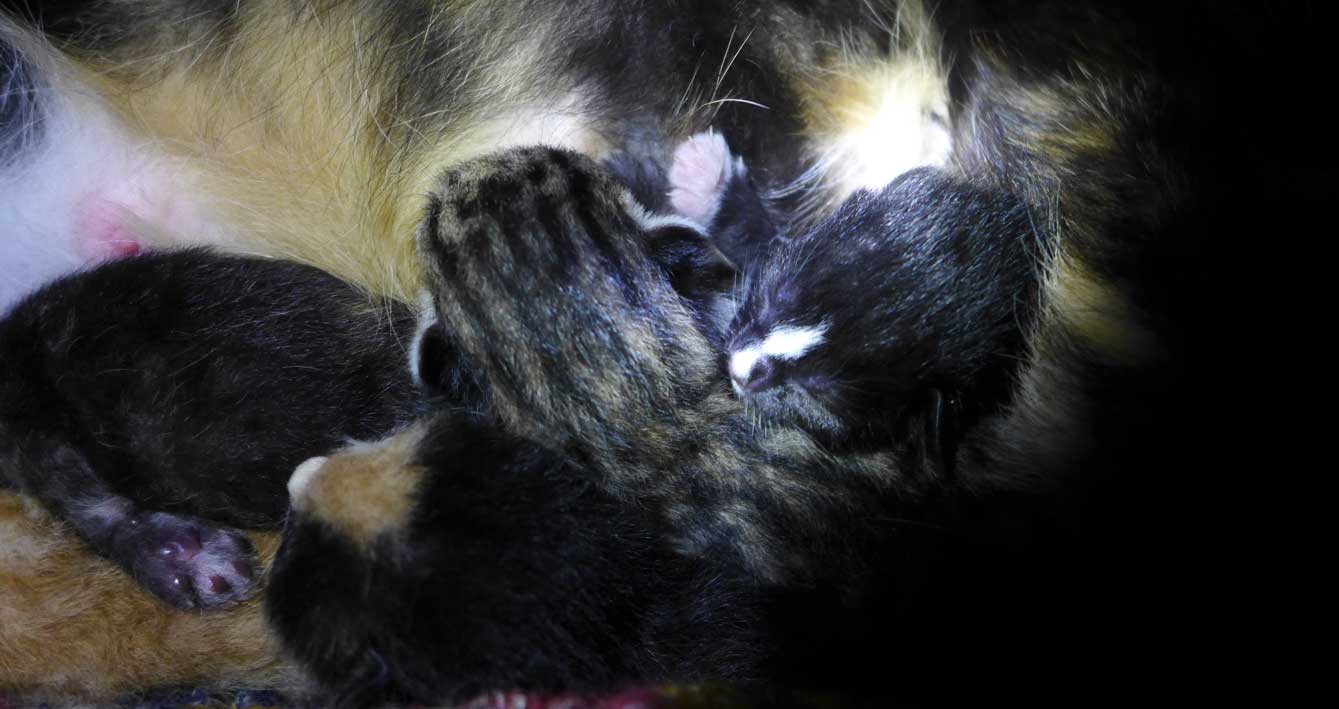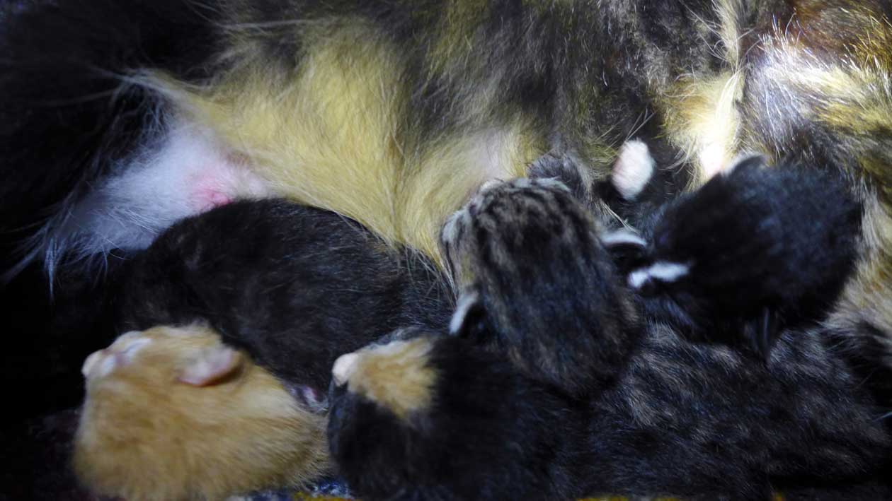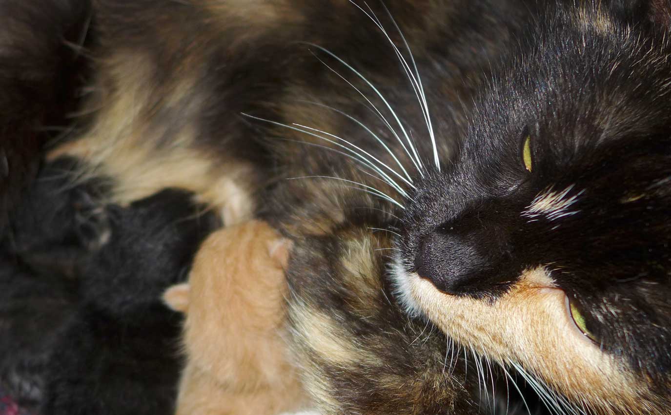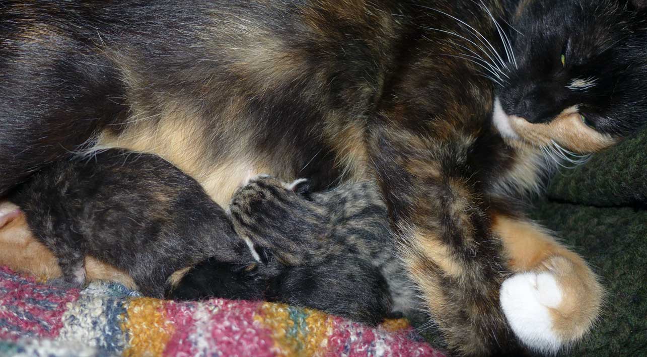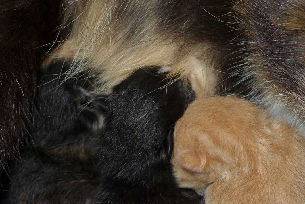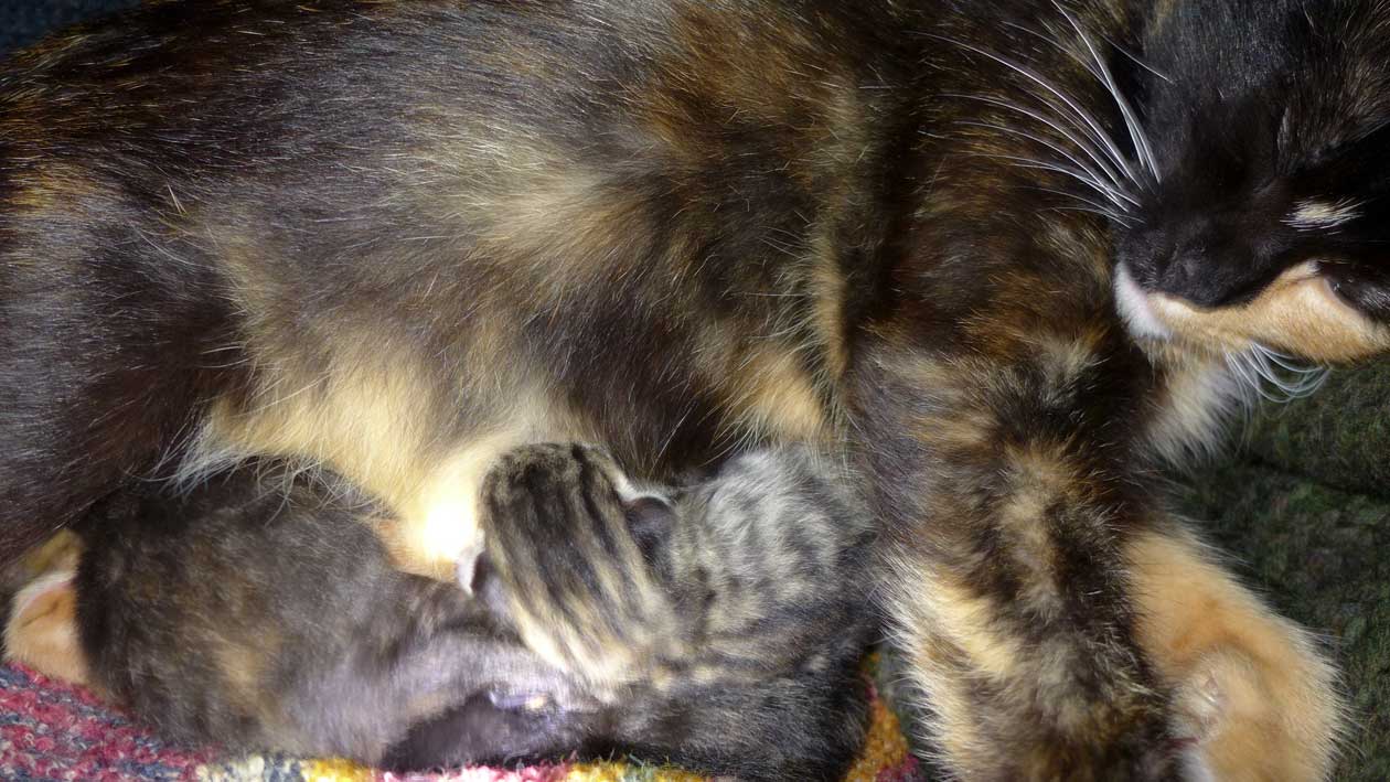 das Schnurren der Mutter zum Saugen werden die Kleinen erinnern wenn sie selbst dann gross im Arm liegen der Menschen.