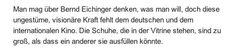 welche Schuhe werden sie wohl in der Vitrine zeigen. Die des Eichingers, zu dem sie ihn immer machten? oder die die er heimlich in seinem Hause still verbrag