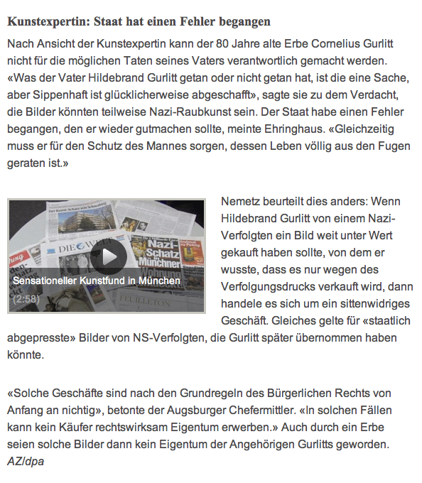 So feststellbarer Raub oder Abpressung, Entschädigung zum Zeitpunkt der Untat und die Sammlungen ( nicht nur Gurlitts )