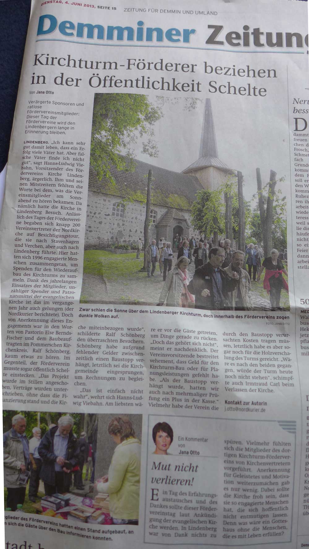 Streit nachträglich um der Herkunft der Verdienste um die Kirchen ? Unseren Verein, der den Turm in Nossendorf