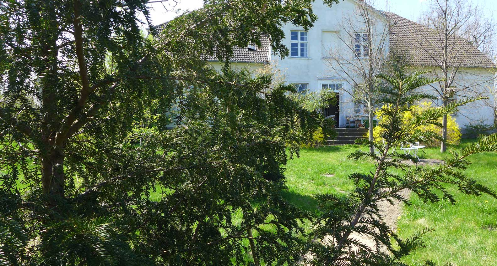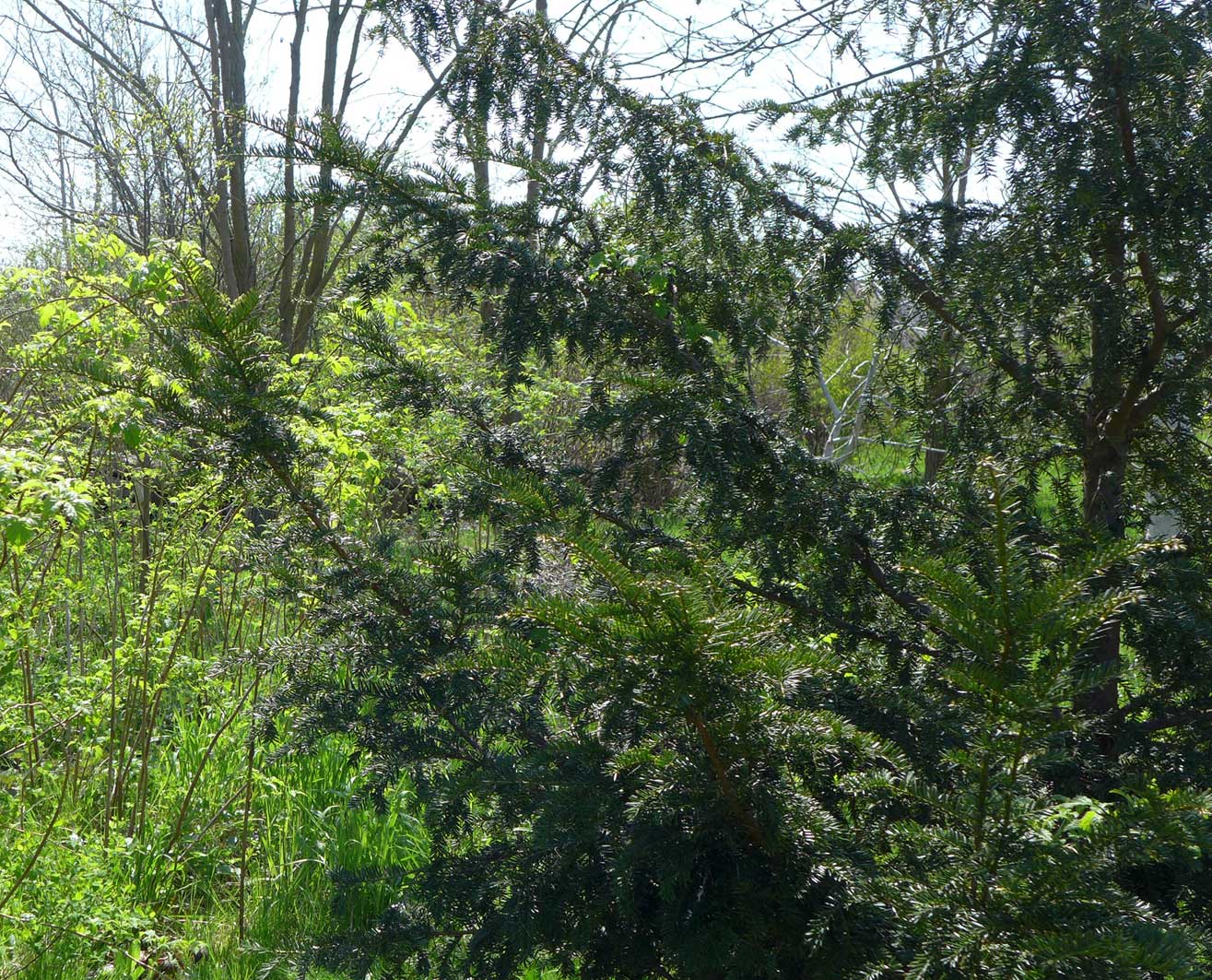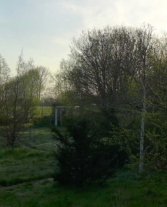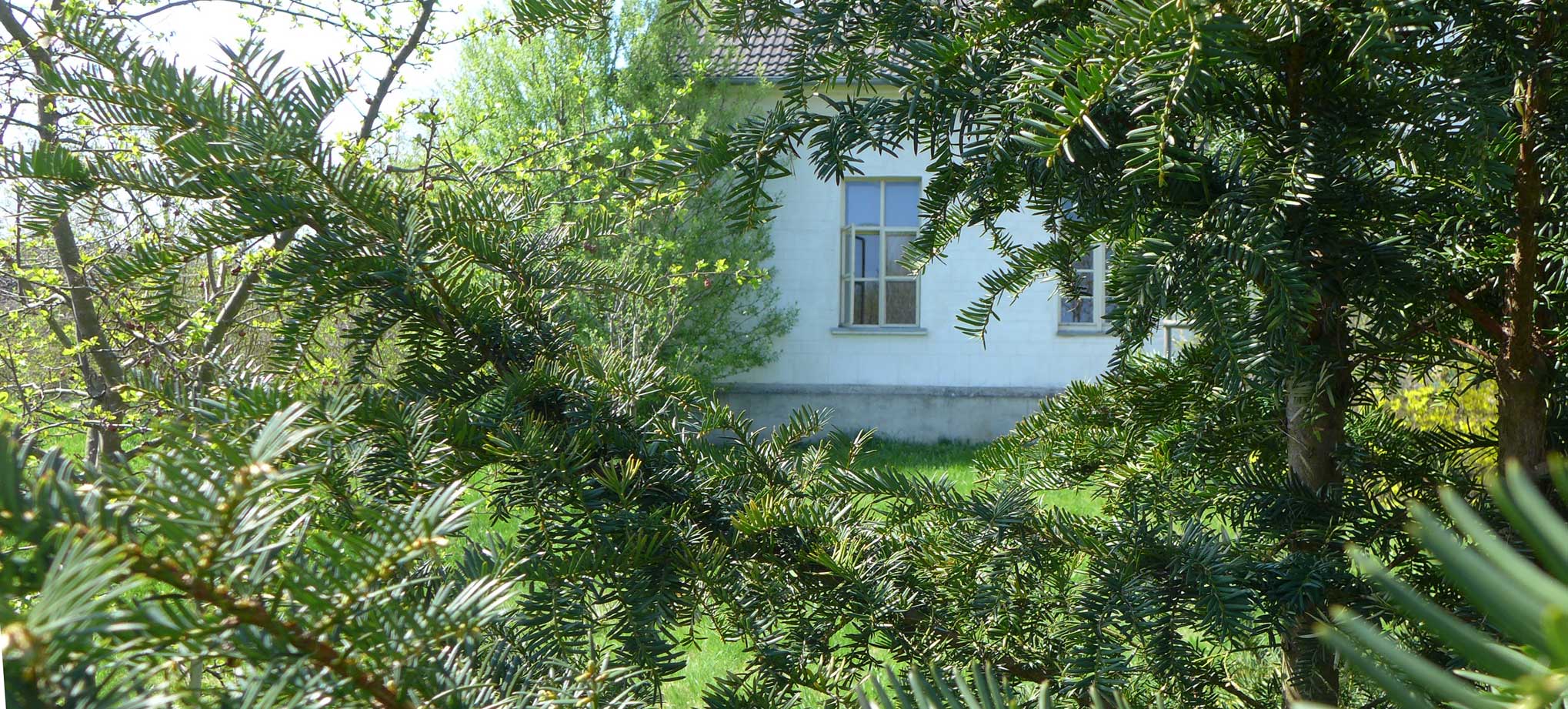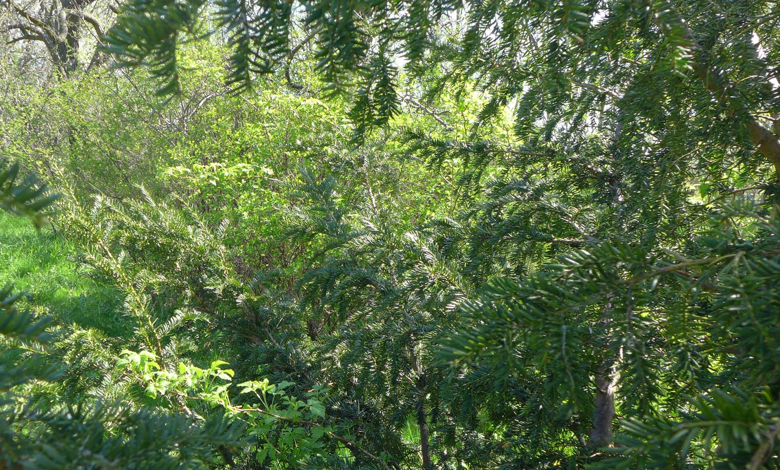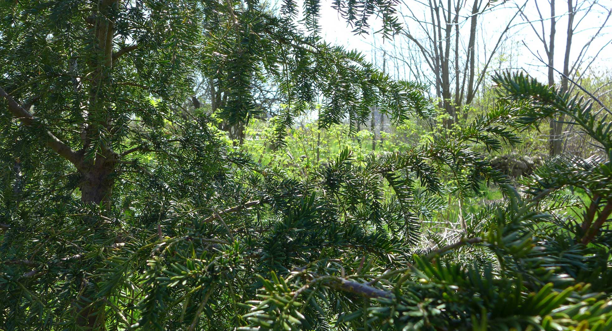 dunkel sind die Eiben in zehn Jahen ins Dunkle gewachsen und geben nun frei die sanften Schleier der Blüten und Knospenwunder