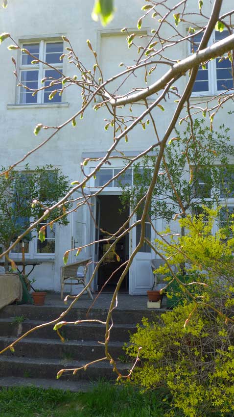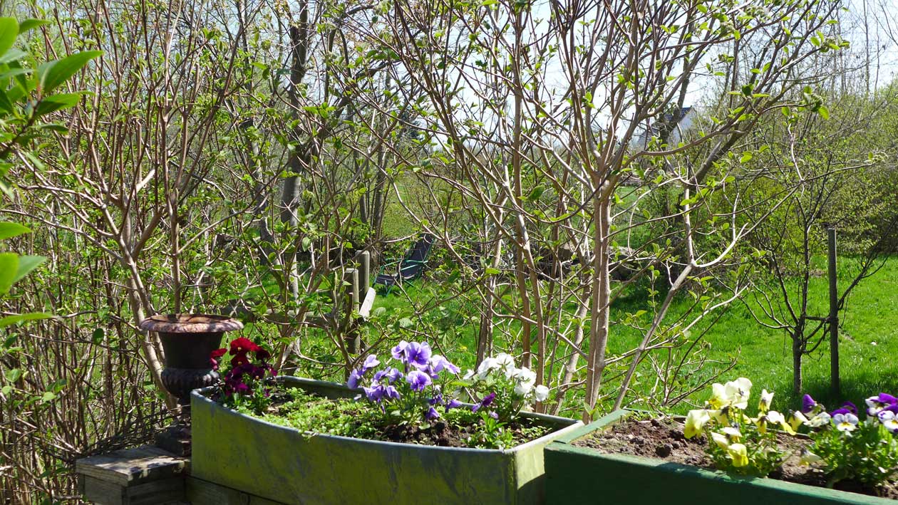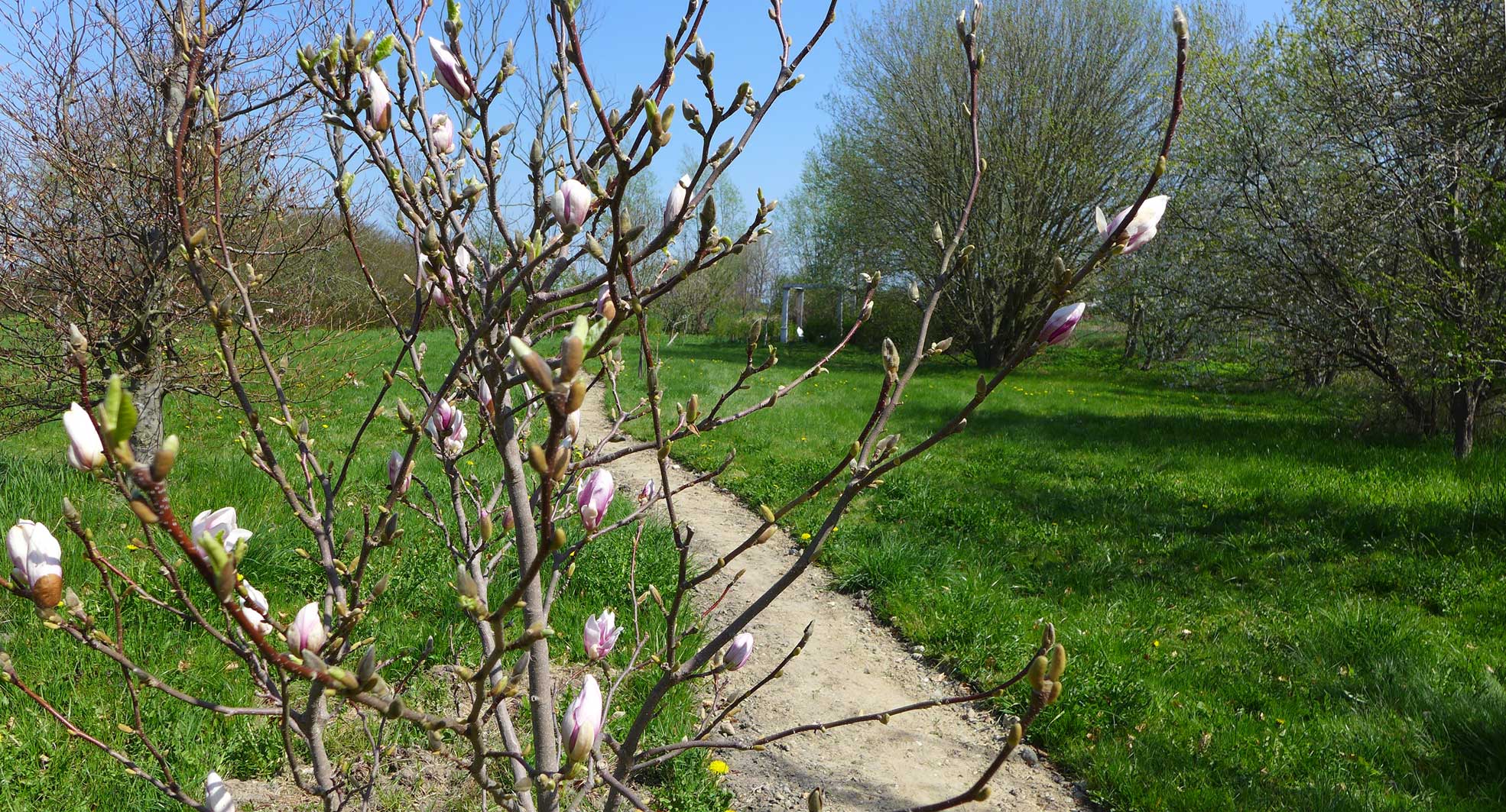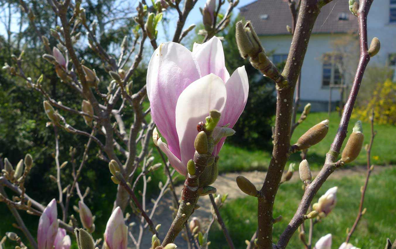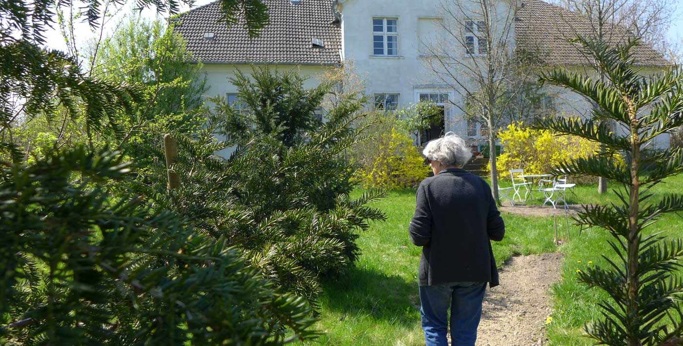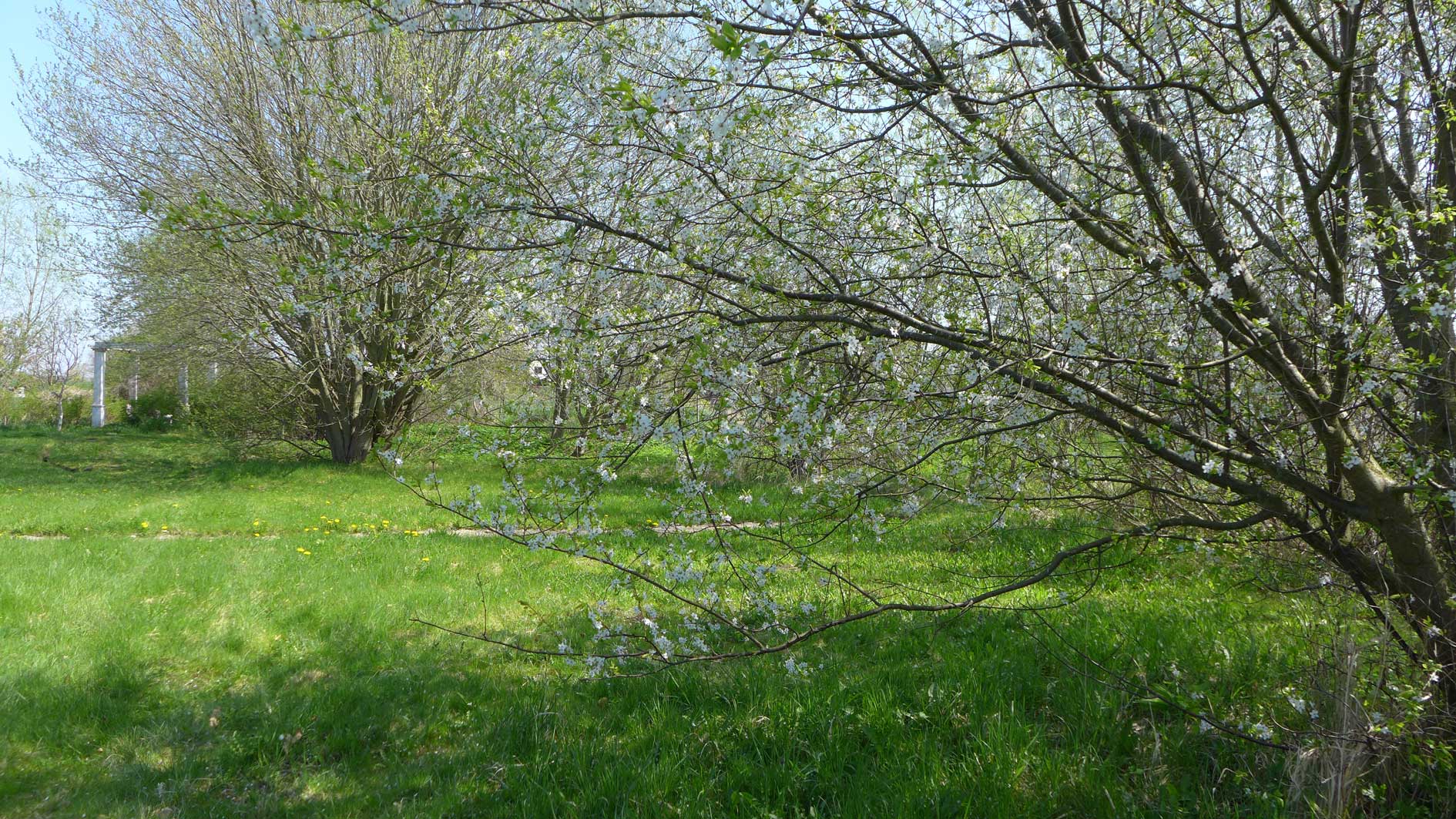 dunkel sind die Eiben in zehn Jahen ins Dunkle gewachsen und geben nun frei die sanften Schleier der Blüten und Knospenwunder