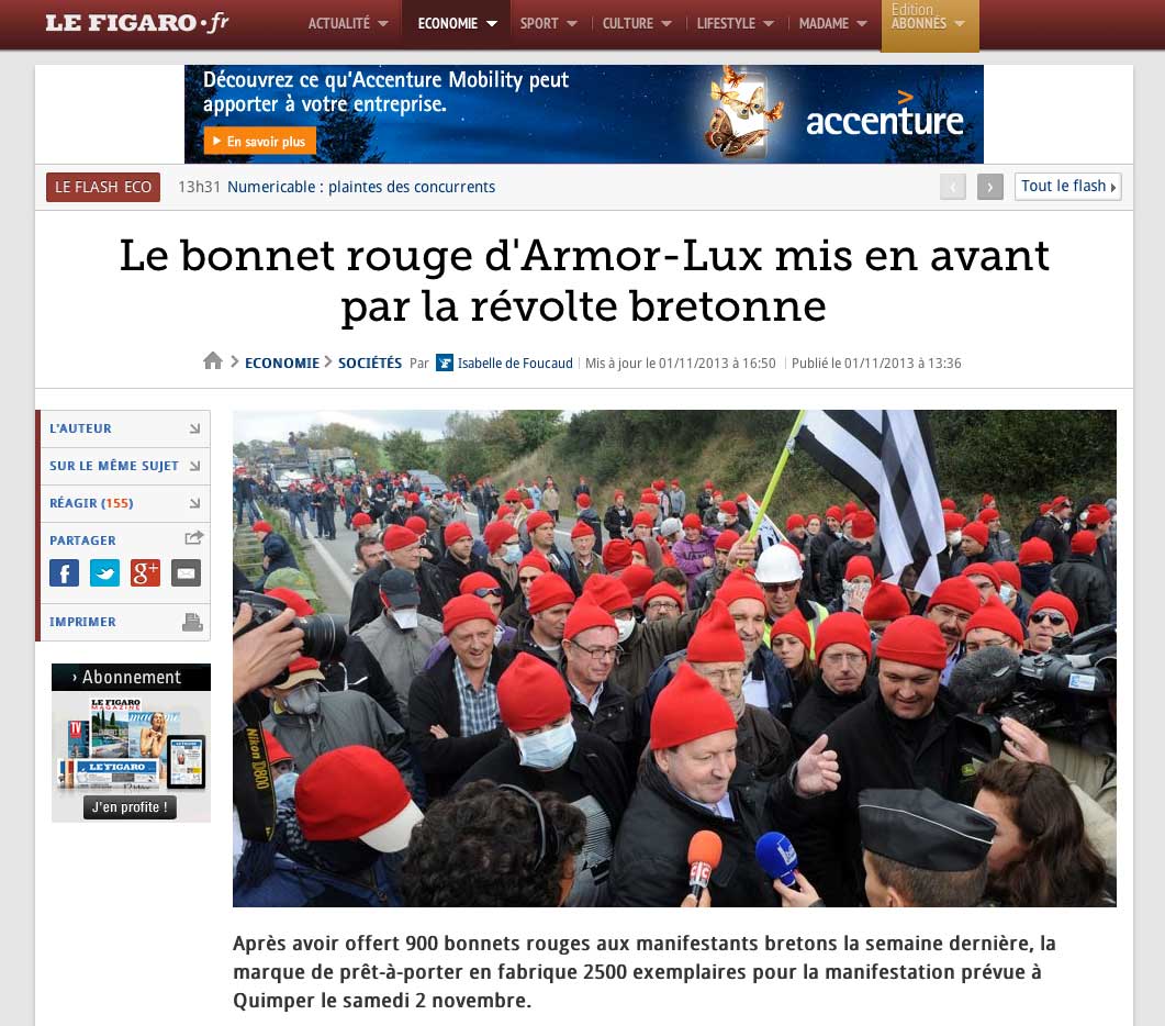 es sieht so aus, daß die Bekleidungsfirma "Armor Lux" (Armor nach meiner Erinnerung die Bezeichnung der Bretonen für die Bretagne, Land am Meer, mor= Meer) am Anfang der Demonstrationen diese Mützen zu Hunderten an die manifestants verteilt hat.