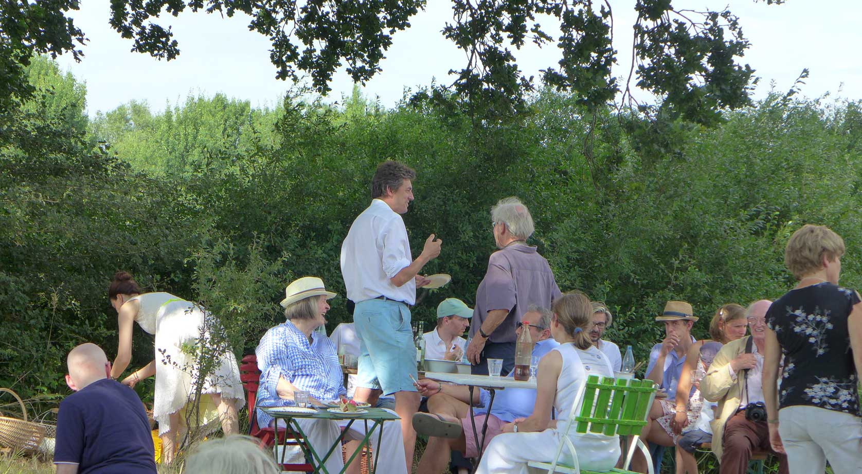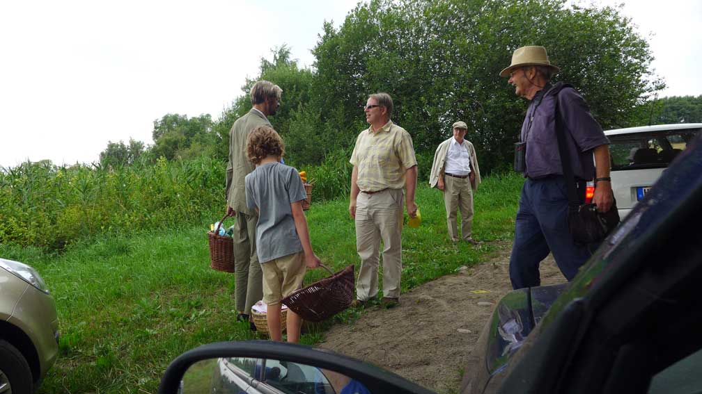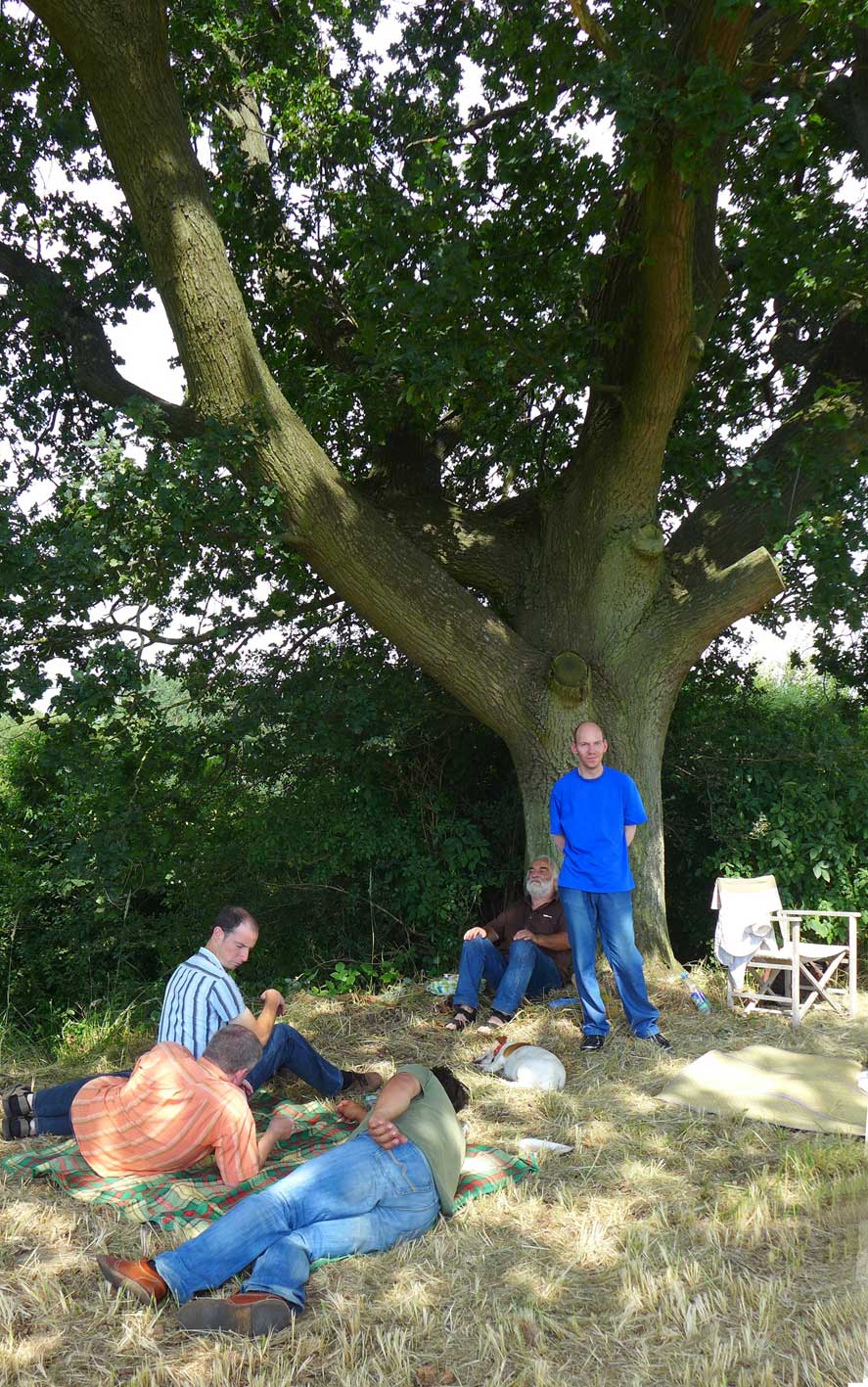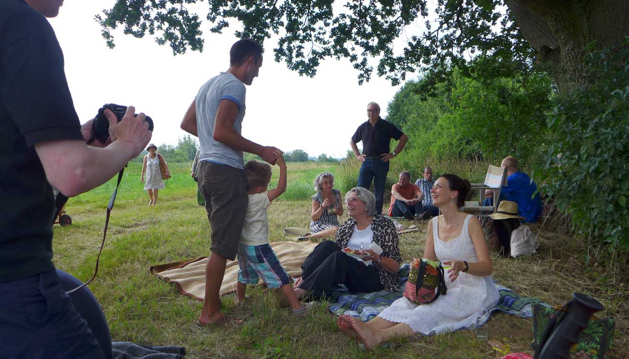 Regie auch alles chronologisch, die Wahl des Platzes über dem Fluss, unter den Eichen mit dem Turm hinter den Feldern, die Abfolge der Stationen, der Zufall der Besetzungen, und stille sein. nur leitend sehen., dass es läuft.