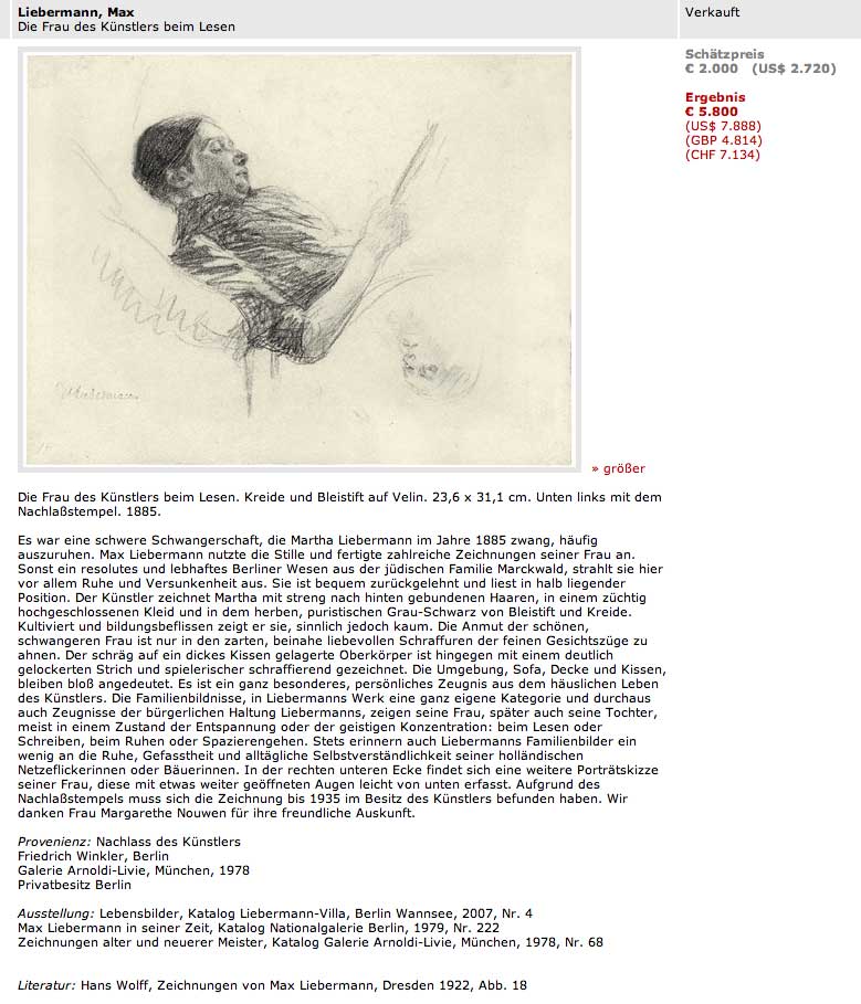 Hier ein Fall ausserhalb der Gurlitt-Sammlung auf dem Markt
