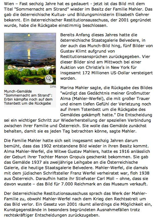 So war auch in Österreich nach dem Krieg gehandelt worden mit allem nach 1938 enteignetem Gut, zurückzugeben. pauschal abzugelten bei Notverkäufen aber es habe im Land zu bleiben und so alles einvernehmlich für gut befunden. Jetzt ist auch dort wieder alles aufgemacht worden, als ob es keine Abmachungen, Entschädigungen gegeben. Von Zeit zu Zeit immer neu. Und die Sykophanten aller Ortenreiben sich die Hände.