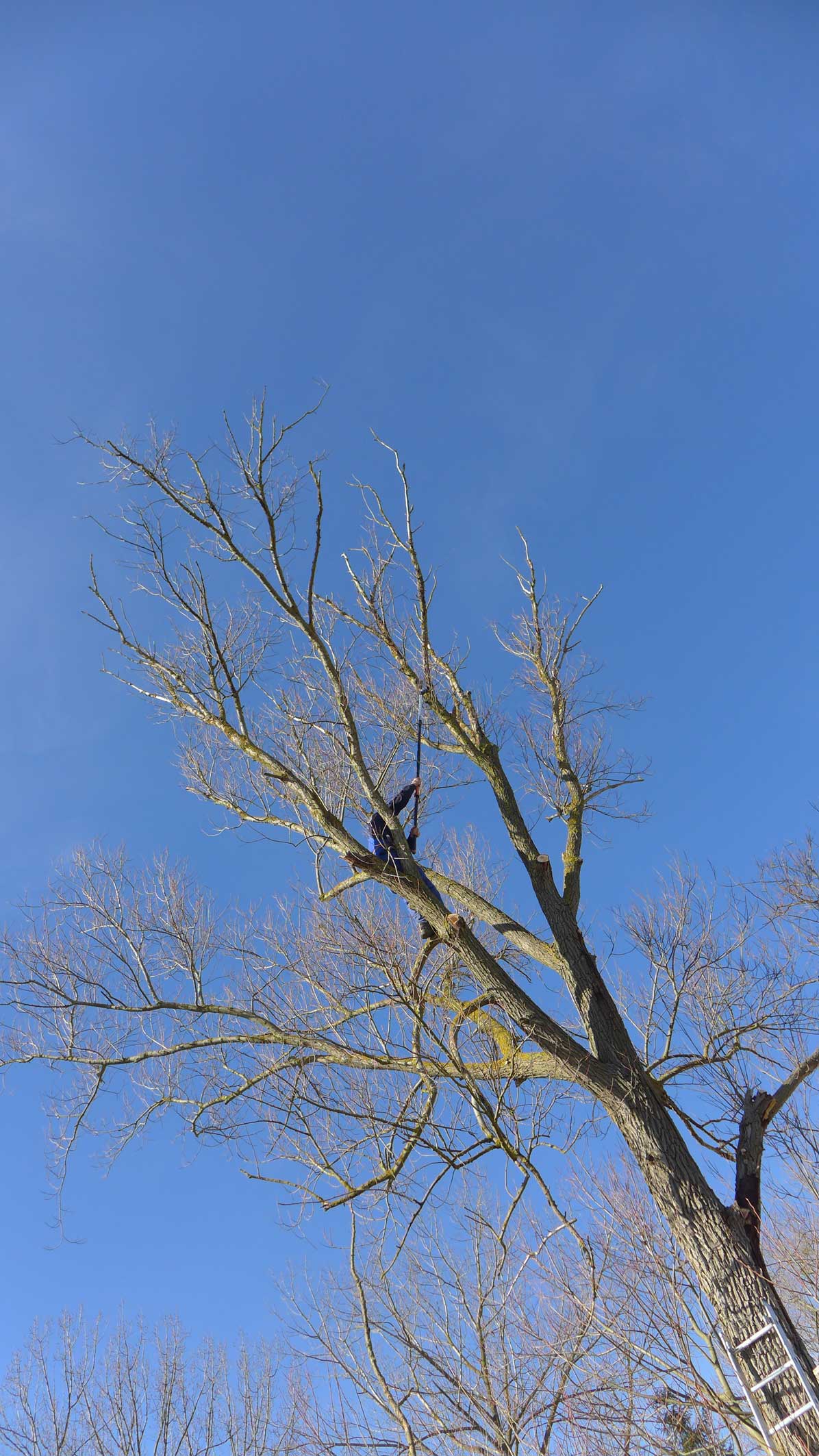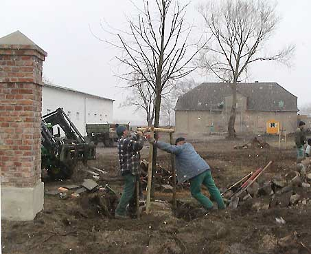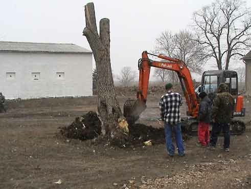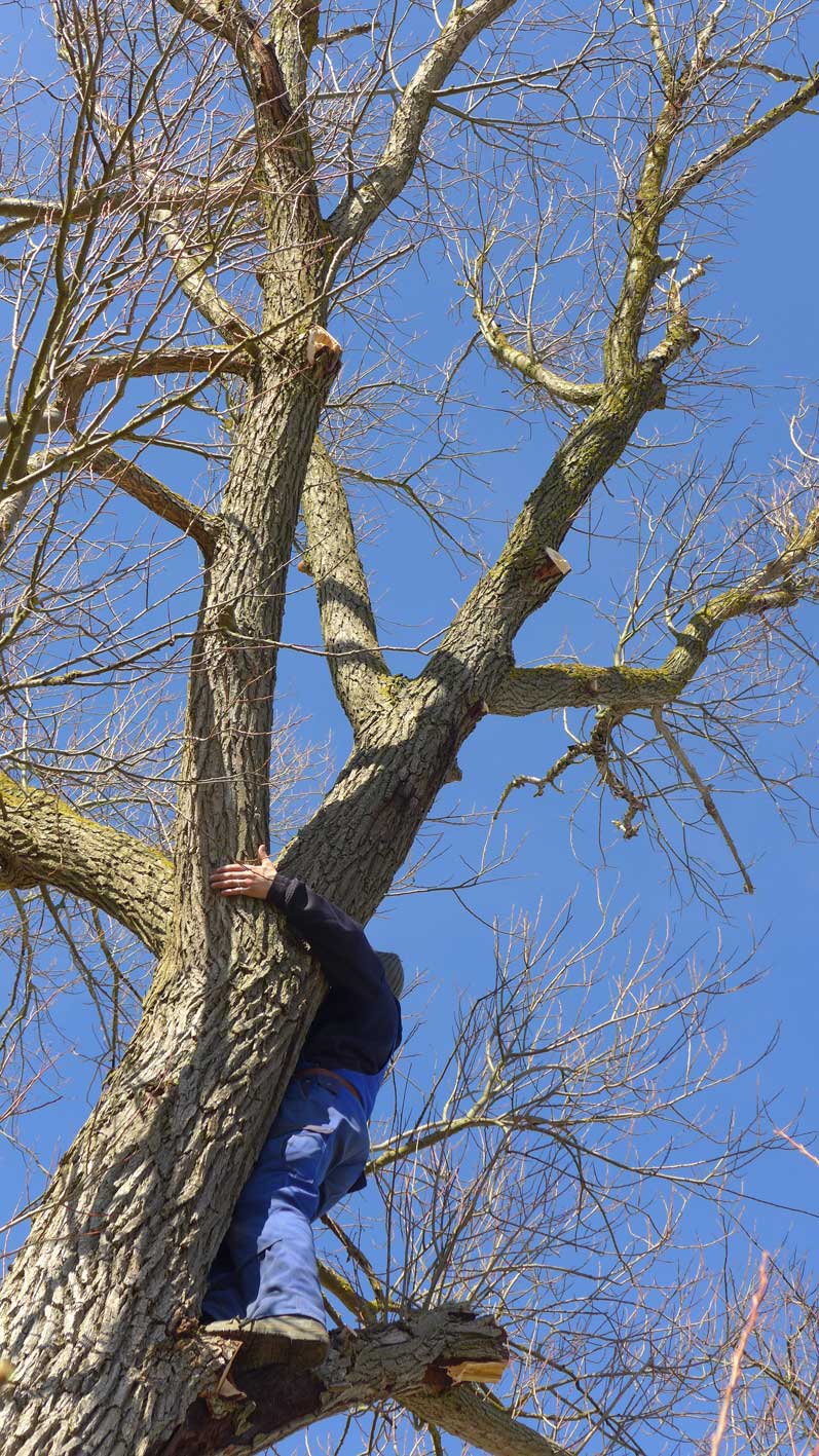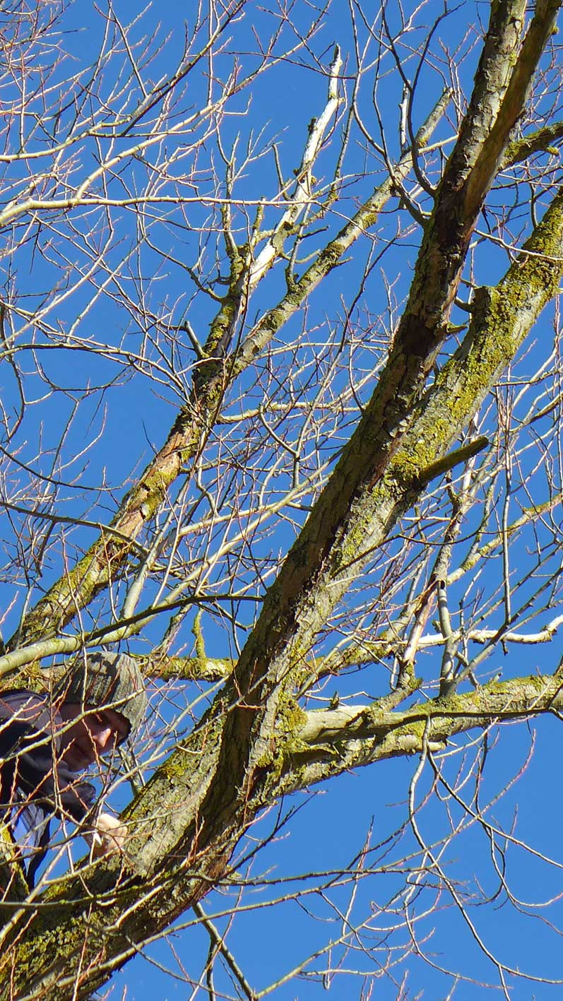 als wir kamen, zur Unterschrift der Übernahme wieder, war zur Begrüssung die den Hof domierende Weide des Hauses vernichtet. Seitdem kämpfen wir ums das Überleben der kleinen mit verborgenen Eisenkeilen in der Wurzel attakierten und nun befreiten Schwester.