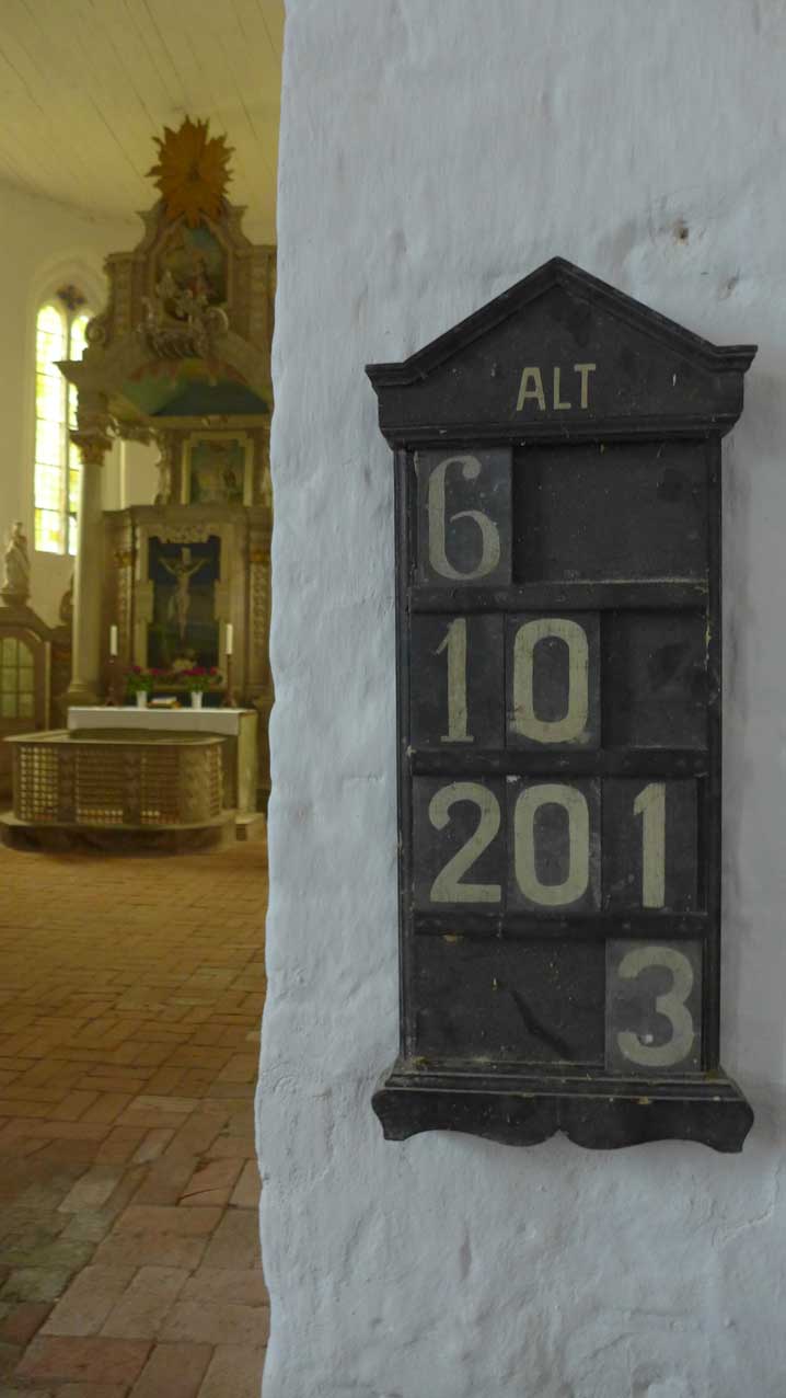 Und an den Pfeilern und Wänden hingen die Nummern der Lieder nach altem Brauch in den Zahlen des Gesangbuchs, wo man ihre Texte findet.