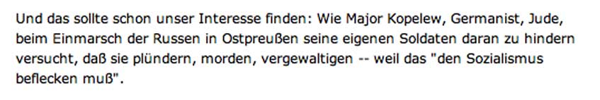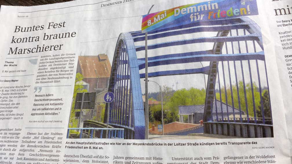 wenn man jetzt von Nossendorf nach Dmmin über die Peenebrücke fährt, liest man dort einen Banner, der nichts Gutes verheisst, Feiern zum 8. Mai, dort wo sich 1945 die Toten im Fluss stauten und wo die Rote Armee Stalins wütete. Man wird diesem Gedächtnis nicht begegnen durch Kranzniederlegungen am Grab der Russen dieses Stalin ohne Proteste auszulösen, akademische Beschönigungen helfen nicht. Auch nicht den Russen. Warum nicht eine Strasse nach dem Mann nennen, auch in Demmin und gerade dort, der damals auf russischer Seite offen "nein" sagte. Und dafür ins Lager musste, als russischer Offizier, solche haben wir auch kennen gelernt, hier, damals. Die sich schämten. Wie bei den Unseren, wenn sowas vorkam. Wir haben gelernt sie zu ehren. Und nicht die Gewalttäter zu entschuldigen.