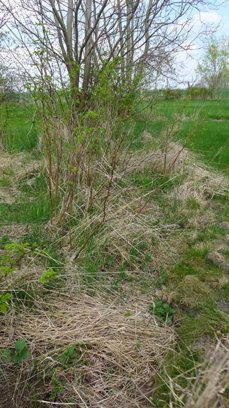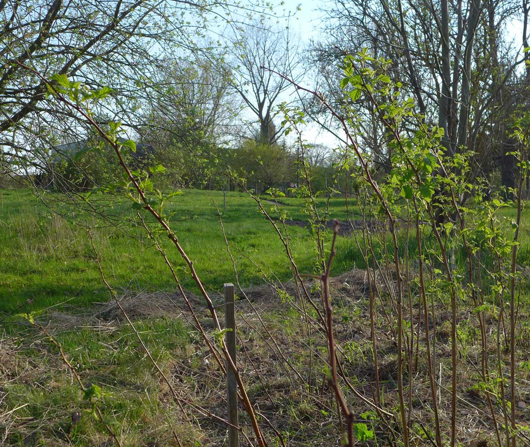 Die Himbeeren standen hier früher nicht weit in der Nähe des Spargels in grossen Flächen. Holen wir sie wieder erlösend aus dem hochstehenden Grass hervor, Auf fruchtbarem Acker im Kleinen. Hinter dem Haus. Wie einst. Nun aber mit Musik im Ohr und der Taten.