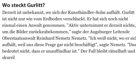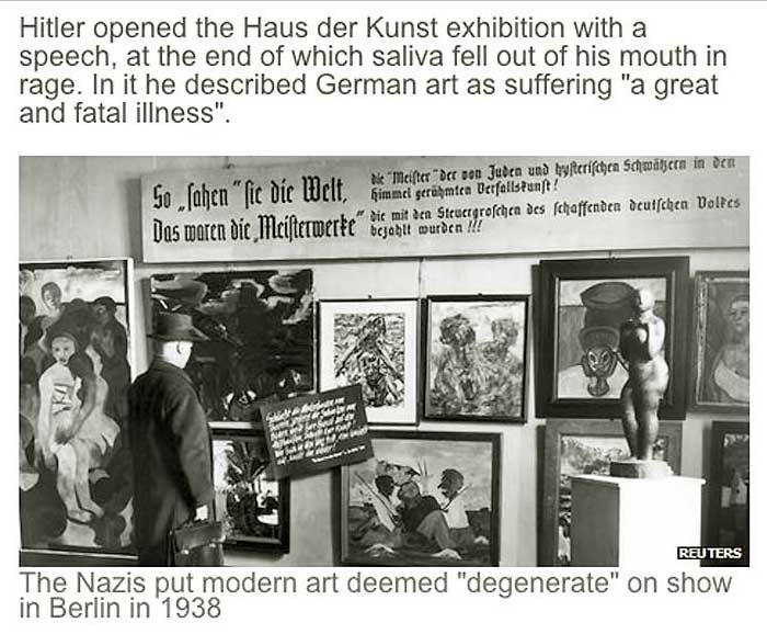 seltsam der Eindruck als handlees sich um einen Nazi-Schatz, da doch diese verfemte -nun hochbewertete- Kunst ihr Gegner war.