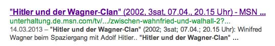 Der oben genannte Film zu Bayreuth, Hitler und Winifred Wagner -vor 11 Jahren zusammengestellt- wurde nachträglich durch mich von meinen Statements befreit. Es gab berechtigte Gründe in diesem Zusammenhang in persönliocher Anwesenheit nicht auftreten zu wollen. Die schon vor 11 Jahren zur Verfügung gestellten Ausschnitte aus dem Winifred Film von 1975 konnten schon damals nicht mehr entfernt werden. Ob sie heute noch rechtens und an anderem Ort (jetzt 3Sat, zur Verfügung gestellt für Spiegel TV) gesendet werden dürfen, und das mit Werbespots aus eben dieser Winifred von 1975, wird man prüfen müssen.