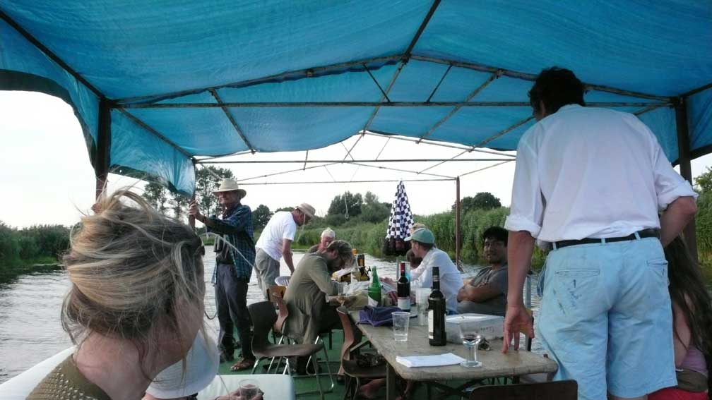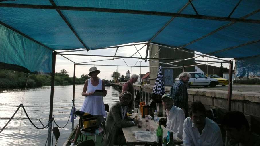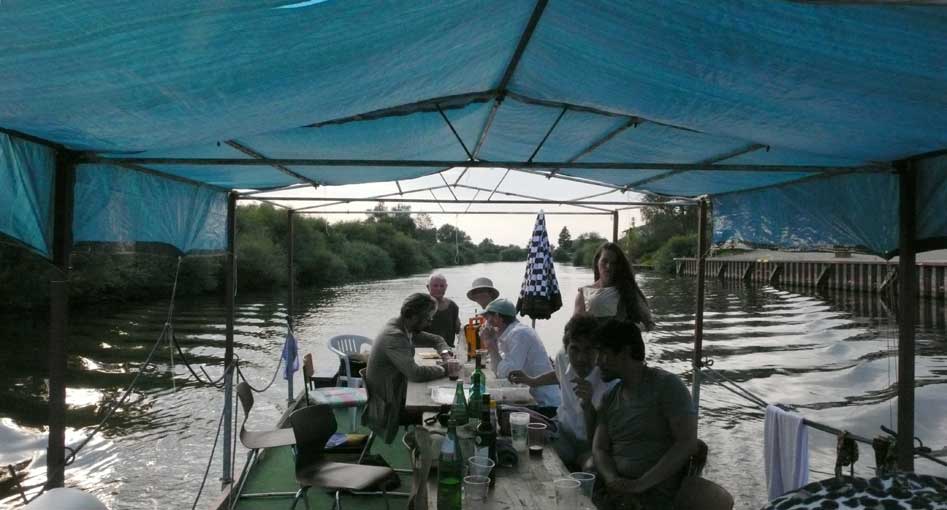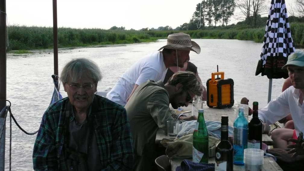 gerettet, fast wäre das Floss nicht fortgekommen, Schnur des Anlassers gerissen(Dr.Z wieder)und Günter in Kontakt zum Zielort. Also los.