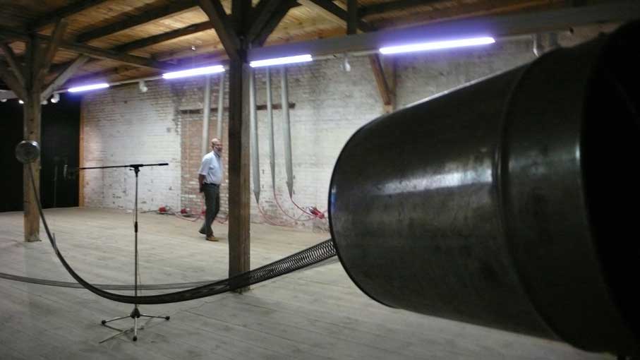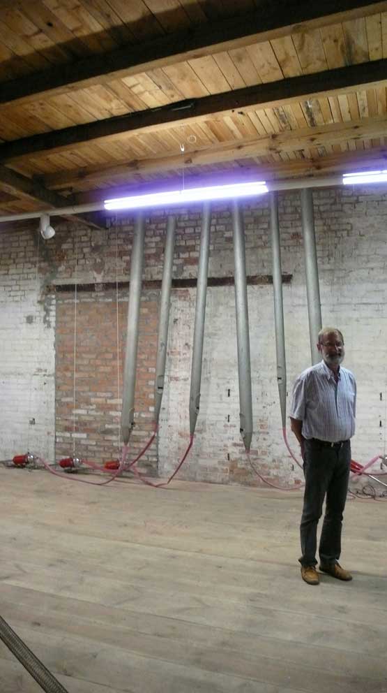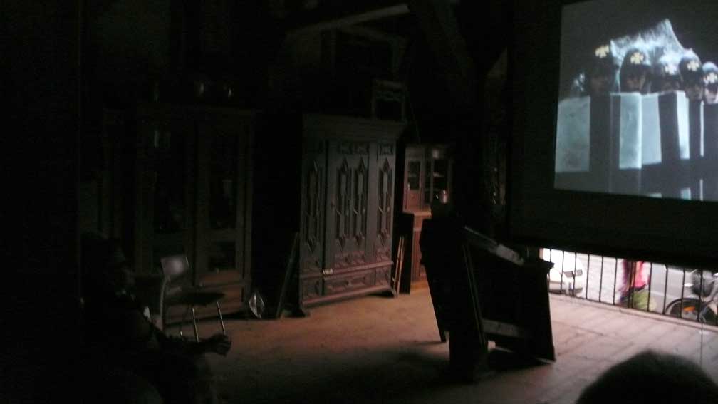 im Inneren aus den Orgelpfeifen, den geretteten in Greifswald, nach barbarischer Beseitigung nochmal Töne