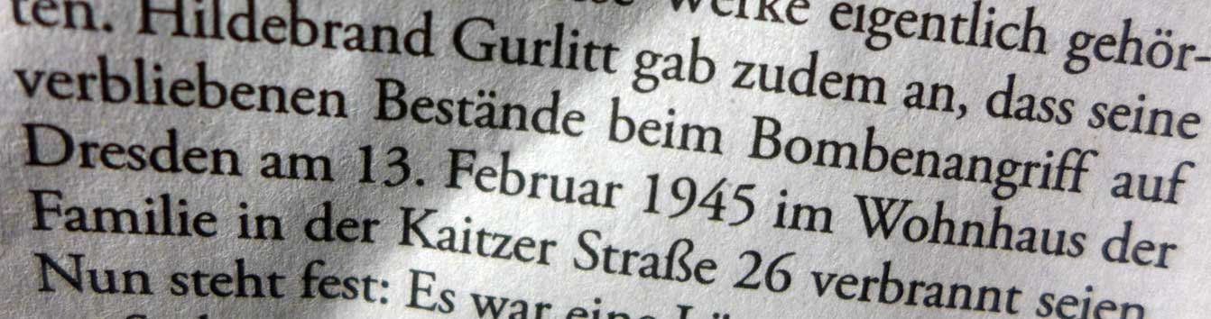 Es wird gesgt, dass während der Bombardierung Dresdens am 13. Februar 1945 der Sohn Cornelius und damit der heutige Besitzer der Sammlung sich mit der Mutter im Keller des abbrennenden Haus befand wo auch die Bilder überlebten. Die er nun auf besondere Weise um sich schweigend versammelte.