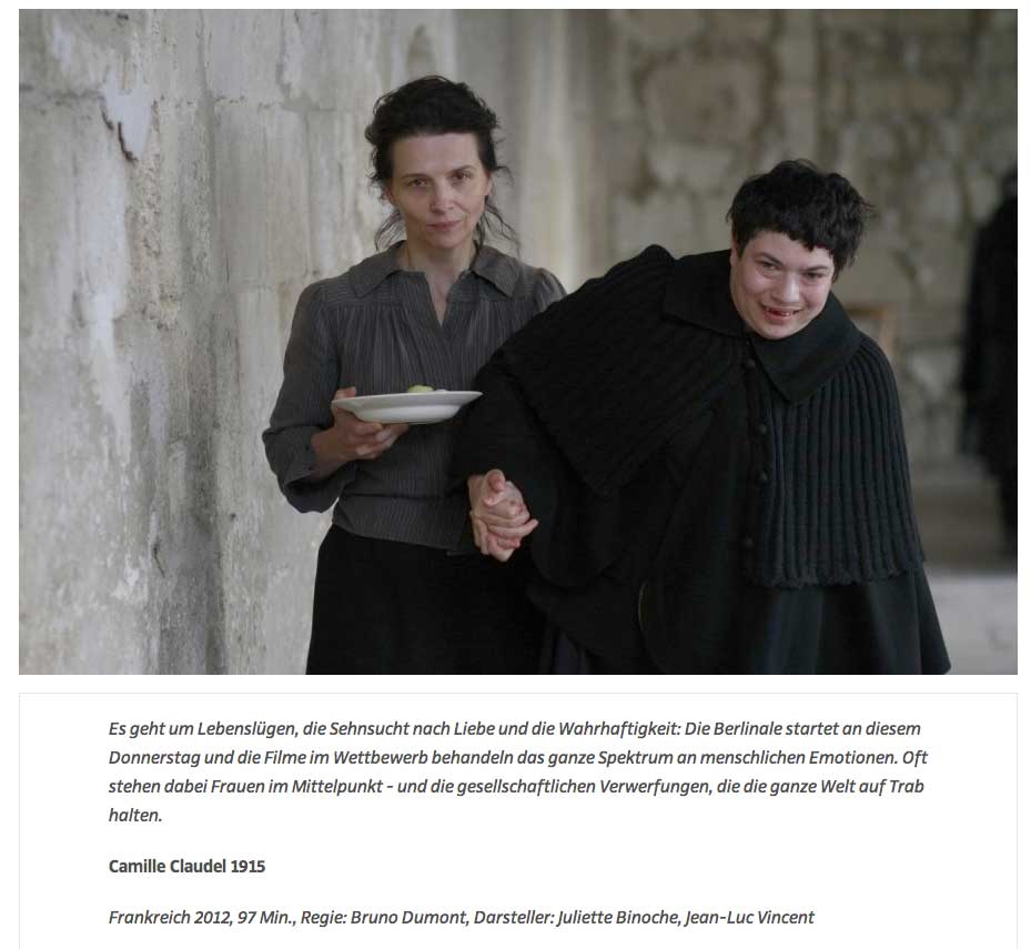 was auf der Berlinale anzusehen empfohlen wird. Es war ein Projekt, was und vor Jahren interessierte als Monologe der Verstossenen der Liebe, Im Irrenhaus alles zerstörend, was sie vorher geschaffen. Rodin gefaährtin und ihm von gleichenm Range.