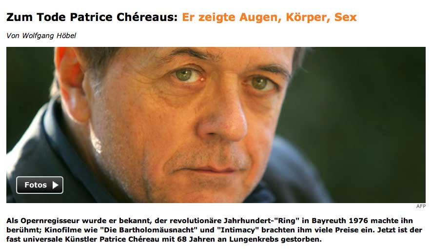 Wir trafen uns in Bayreuth, auch das ist zu sagen, als sie ihne in Frage stellten, selbst ein Augstein und K.von Dohnany und M. Walser, wartend auf noch was ganz Anderes. Aus Deutschland. Gerade von dort. Aber der Parsifal war schon im Entstehen und davor war noch der Hitler zu machen als Film. Er aber traute dem des Ludwigs in Paris sofort sein Haus an. Zum ersten Mal ein Monolog als Gesang ganz anderer Töne. 5 Stunden in deutscher Sprache in Paris . Und das war dann der Anfang.
