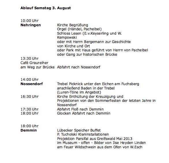 Vielen Dank für die wunderbaren Bilder aus Nehringen, Nossendorf und Demmin. Vielen Dank, dass auch wenn so weit von diesen Orten alle die Möglichkeit haben die Kunst des Gemeinsamens Schaffens, zusammen mit den grossen und Kleinen Protagonisten, Ihrer Kunst des Lebens teilzunehmen. ÊSchade dass ich nicht die Möglichkeit hatte die Luren Töne mitzuhšren.